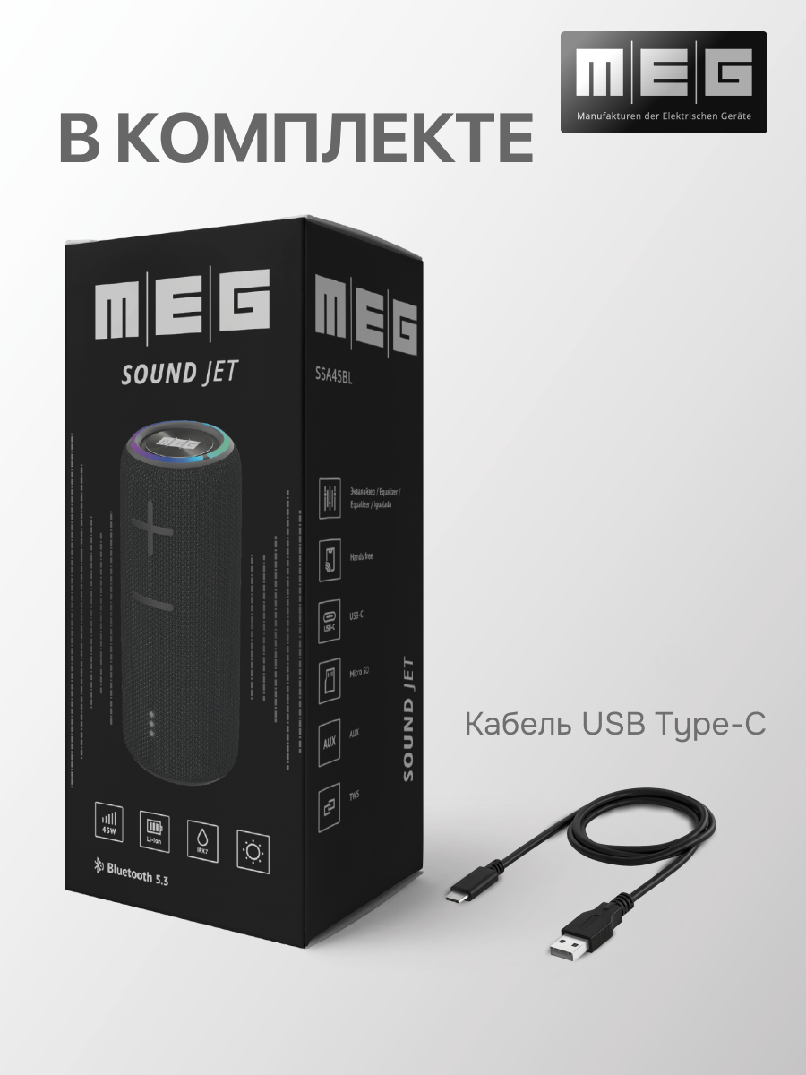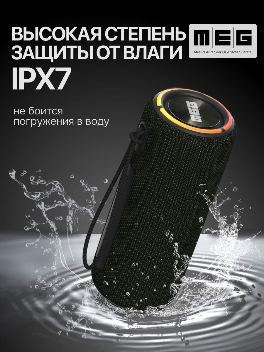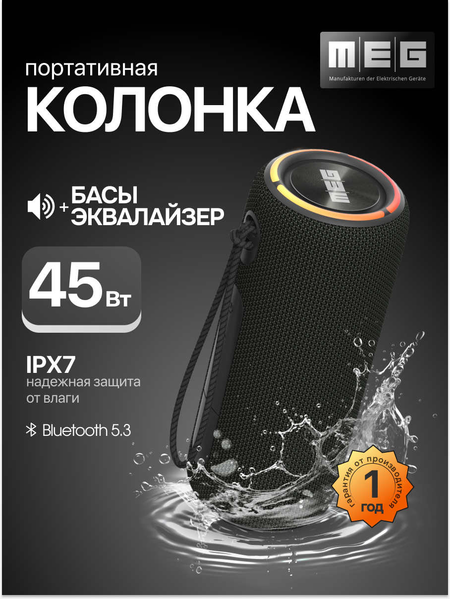 Портативная колонка MEG SSA45BL, 45Вт, Bluetooth, влагозащита IPX7, время работы 12ч, черная интересное: