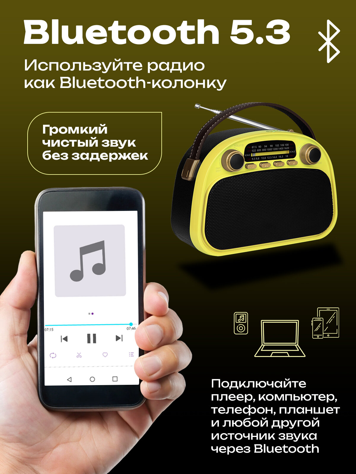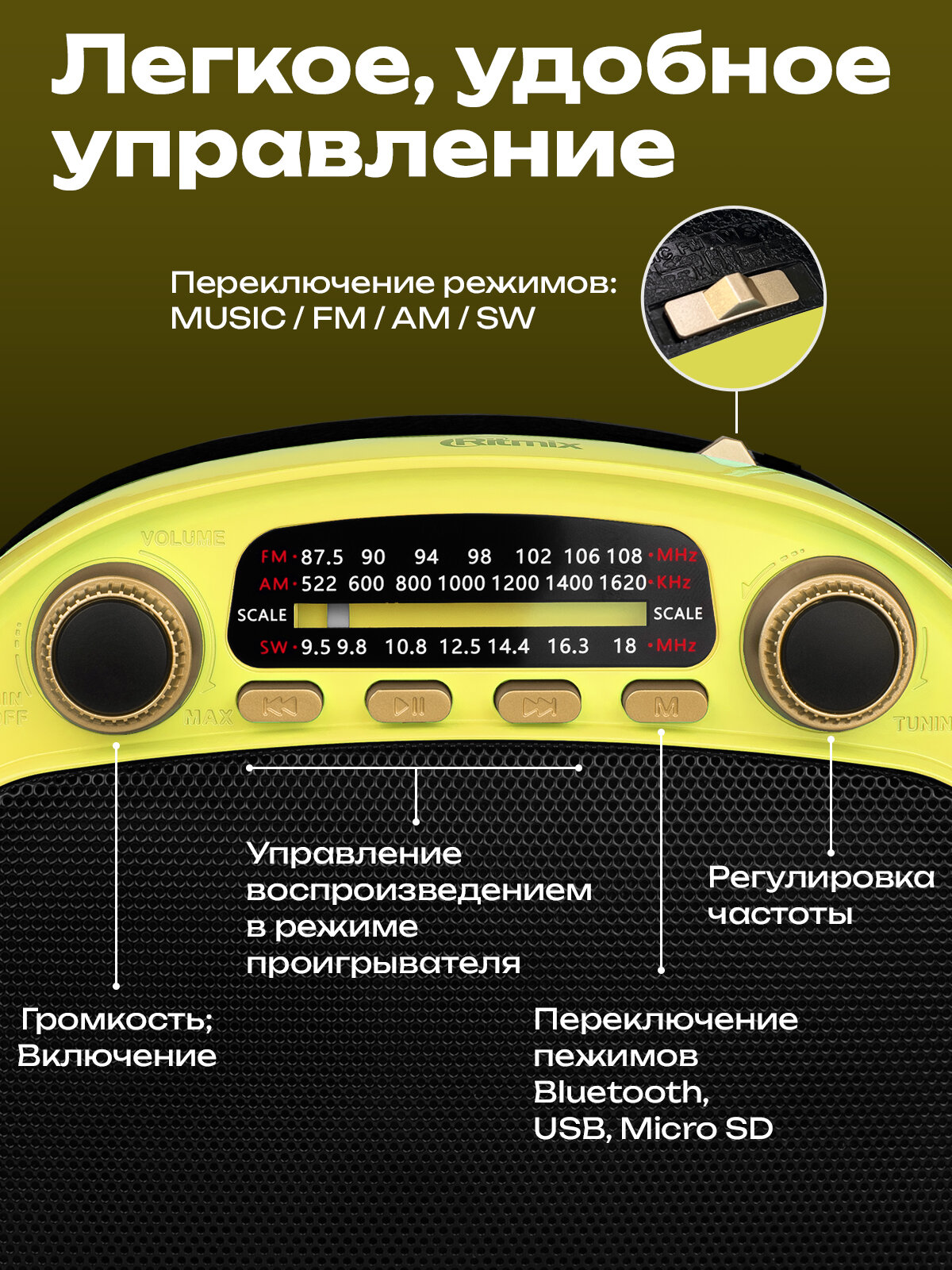 Радиоприемник RITMIX RPR-040 LEMON портативный, Bluetooth, USB/micro SD интересное: