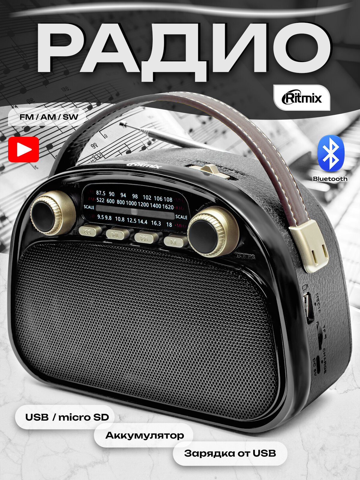 Радиоприемник RITMIX RPR-040 BLACK портативный, Bluetooth, USB/micro SD интересное: