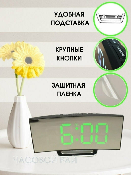 Часы настольные электронные с будильником, зеленая подсветка интересное: