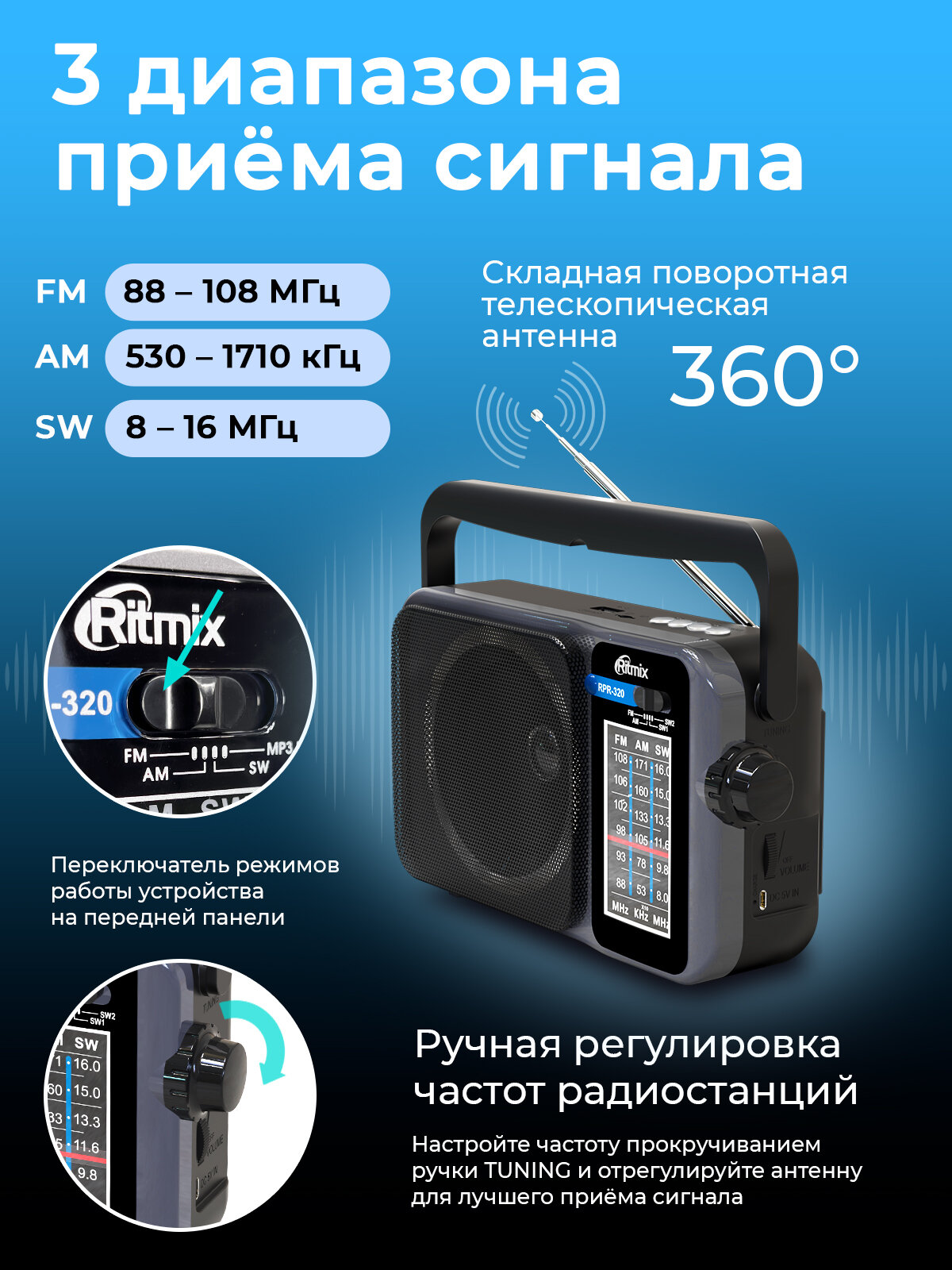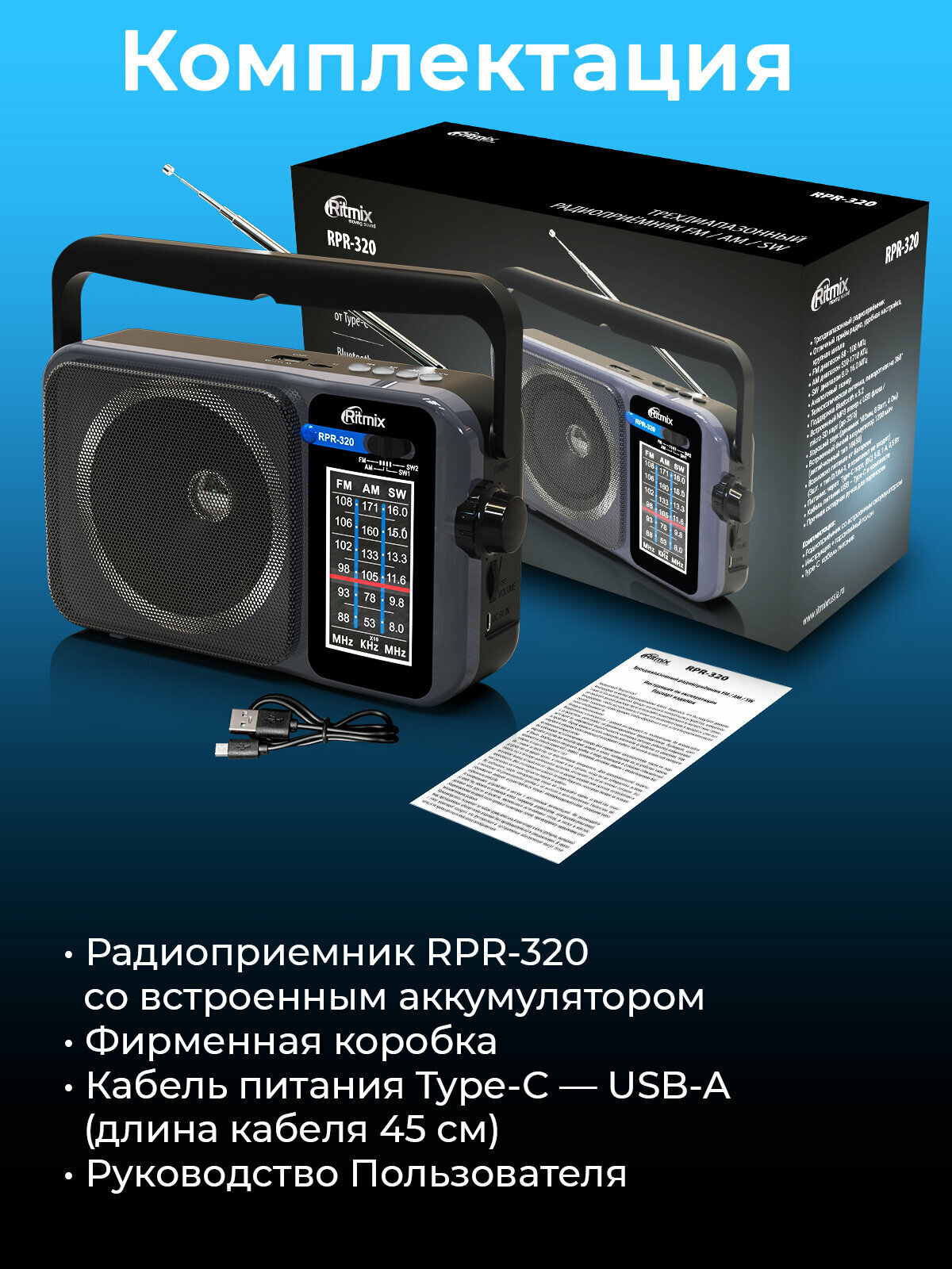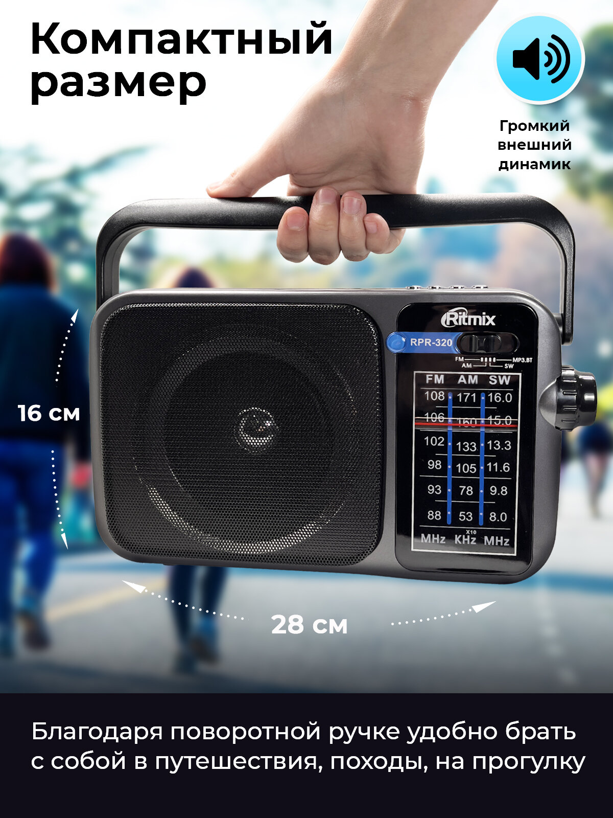 Радиоприемник RITMIX RPR-320, bluetooth, (FM/AM/SW), USB, micro SD интересное: