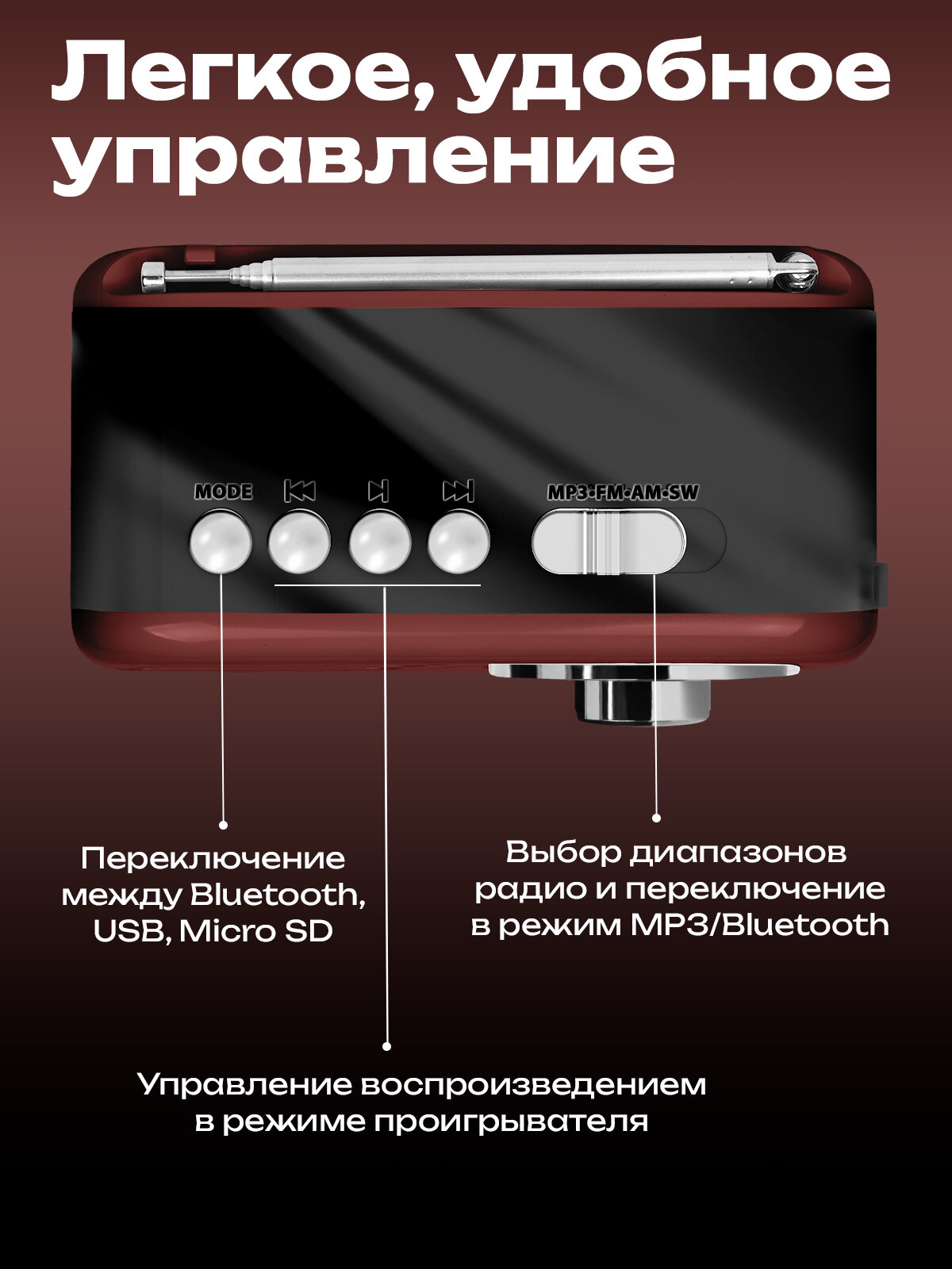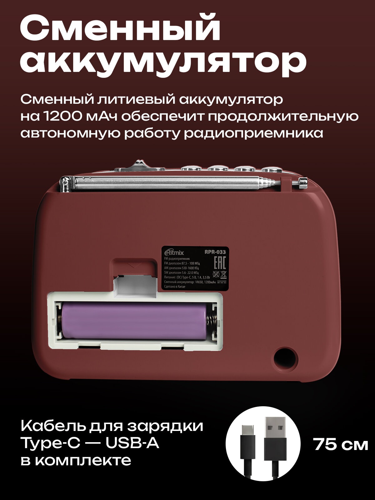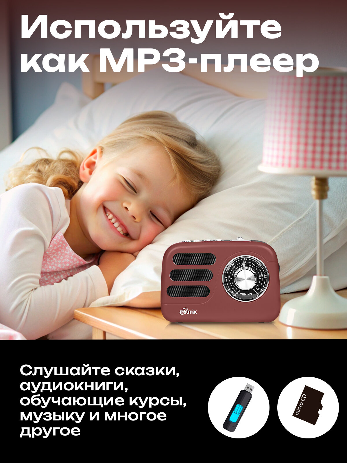 Радиоприемник RITMIX RPR-033 CHOCOLATE Bluetooth 5.3, USB/micro SD интересное: