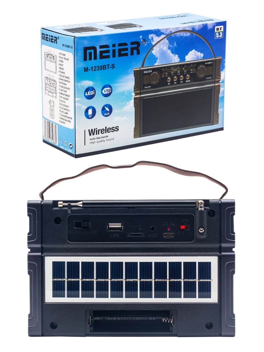 Ниже Вы можете прочитать отзывы на Радиоприемник MEIER c фонарем и блютузом в черно-сером цвете, ознакомится с подробными характеристиками, посмотреть интересные обзоры и фотографии на Радиоприемник MEIER c фонарем и блютузом в черно-сером цвете.