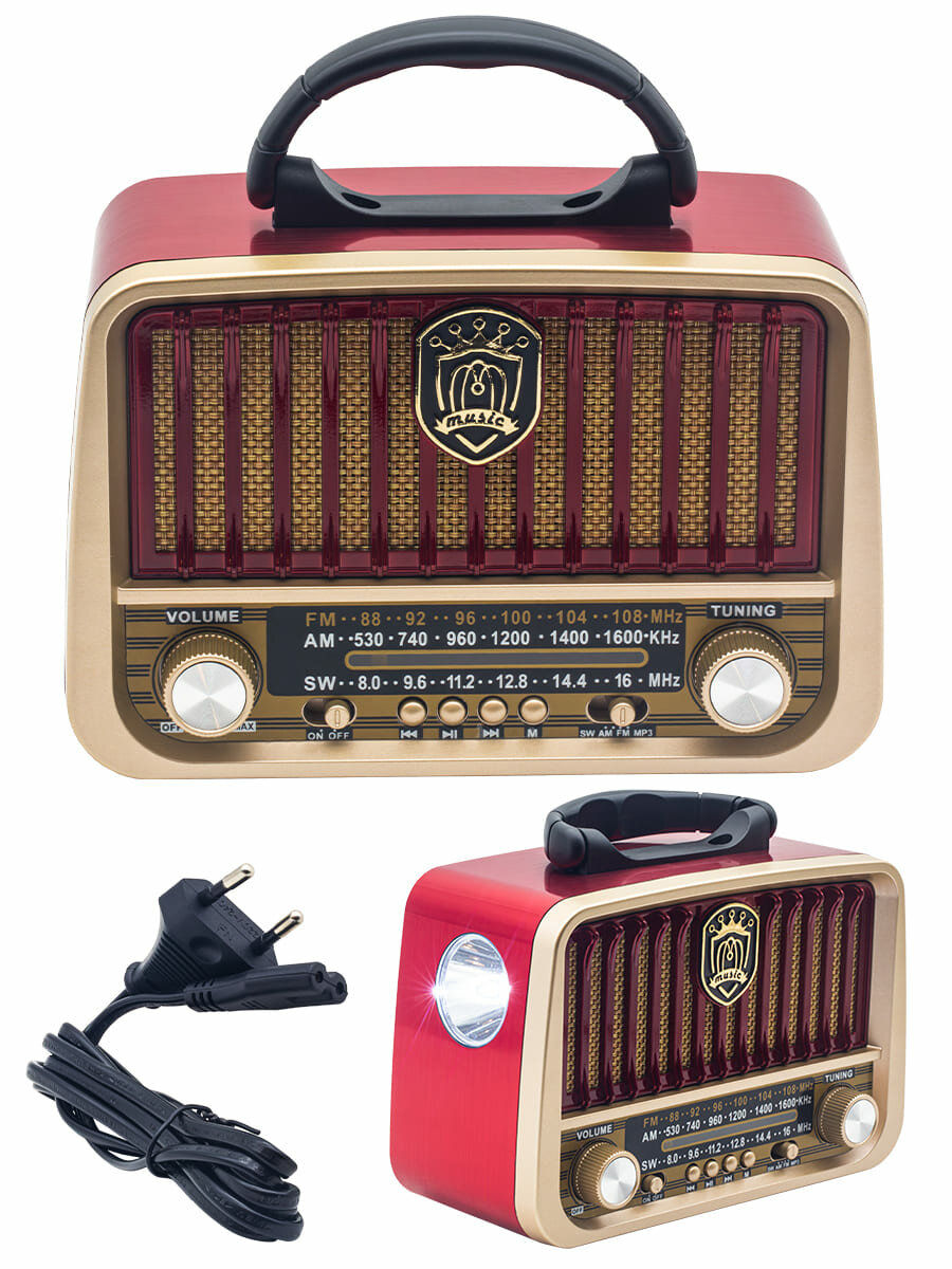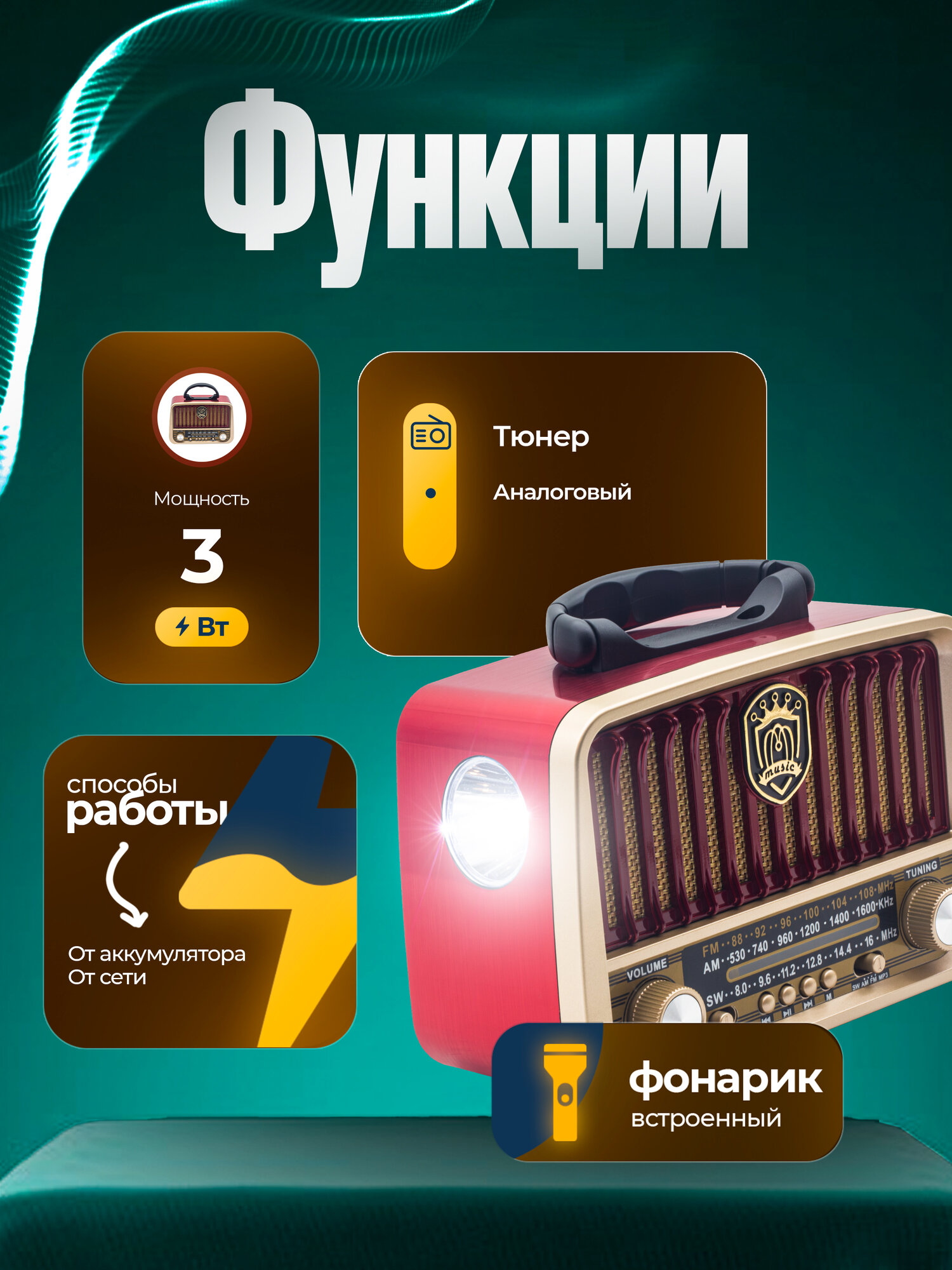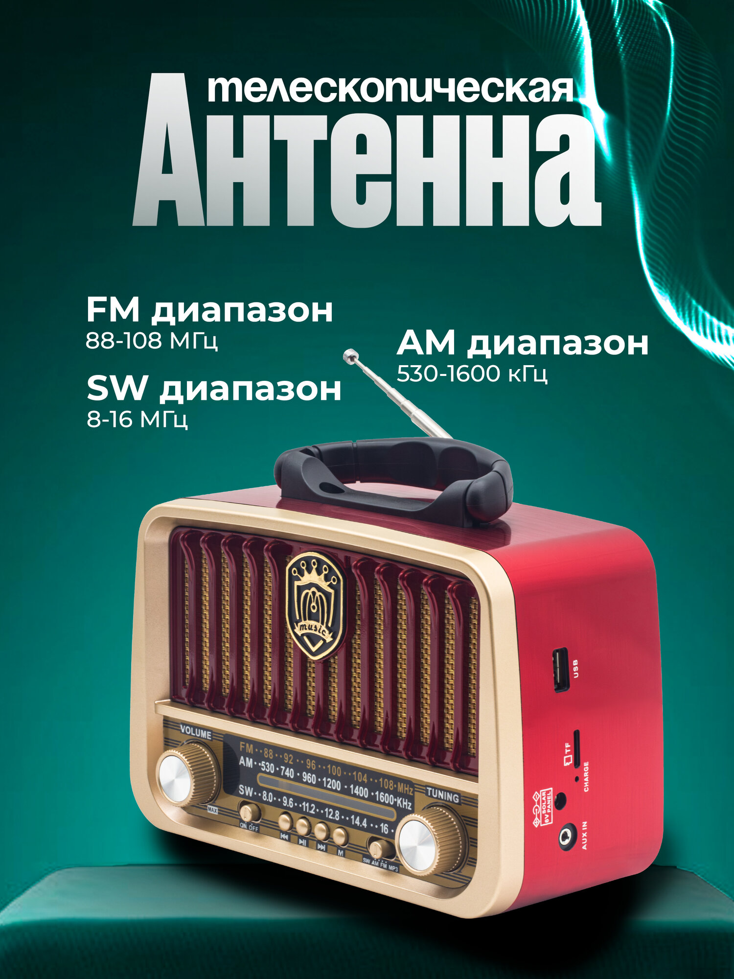 Радиоприемник в ретро стиле с подсветкой и bluetooth Raiseng R-3177BT Красный интересное: