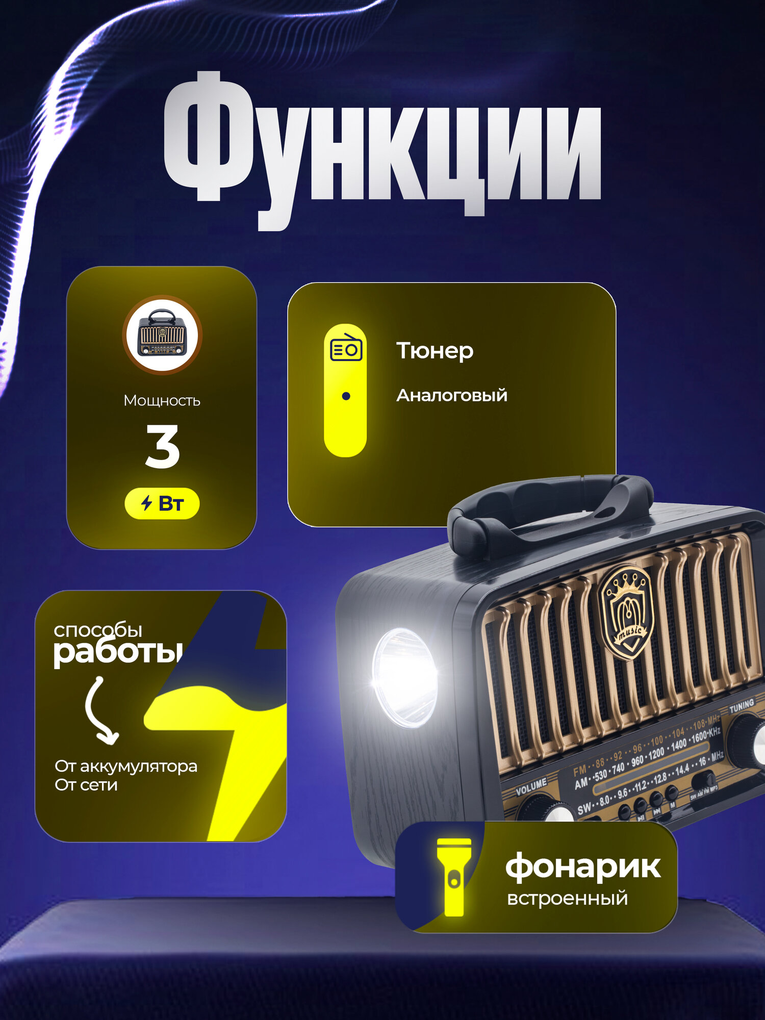 Радиоприемник в ретро стиле с подсветкой и bluetooth Raiseng R-3177BT черный интересное: