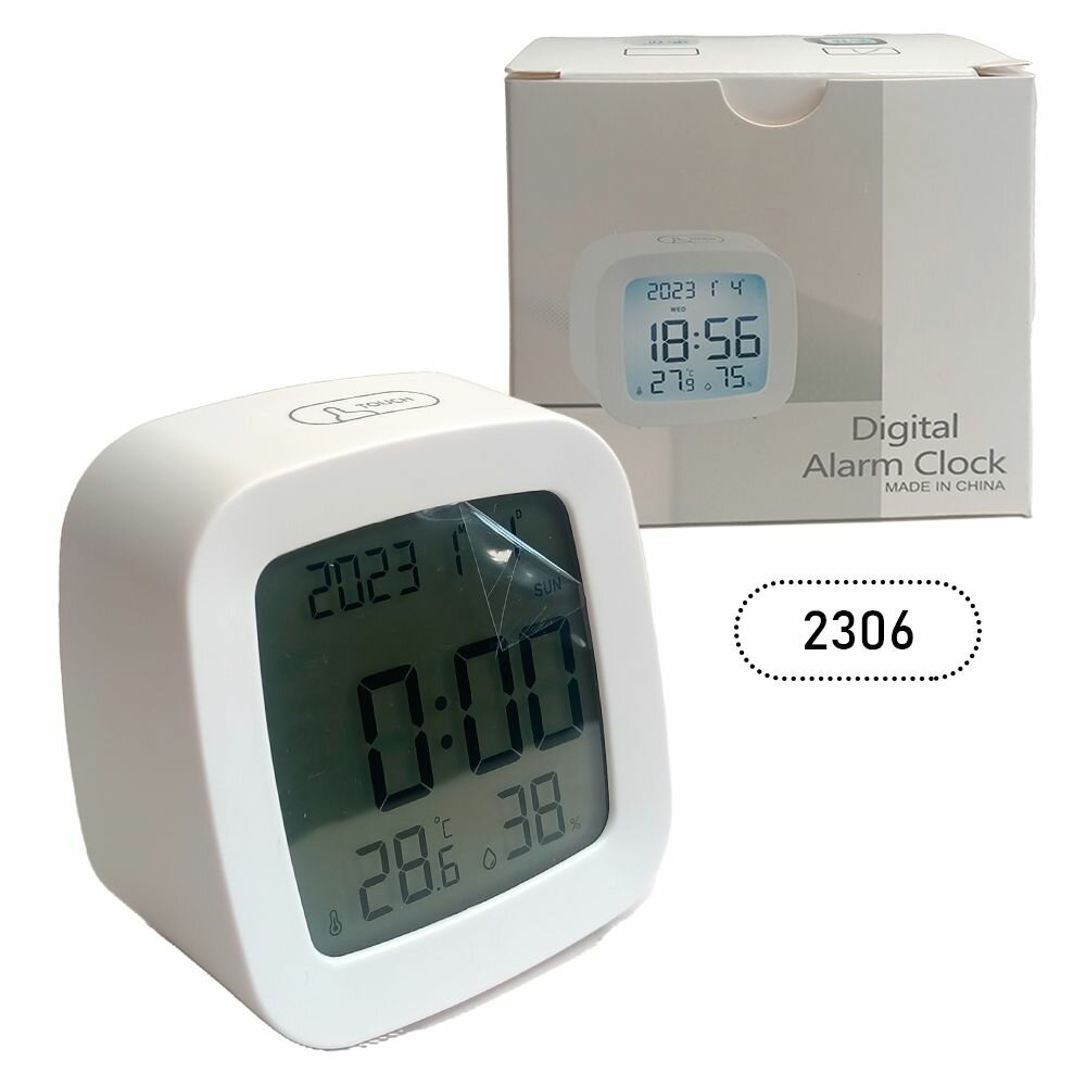 Купить Часы, термометр цифровой настольный будильник 2306, цвет - белый
