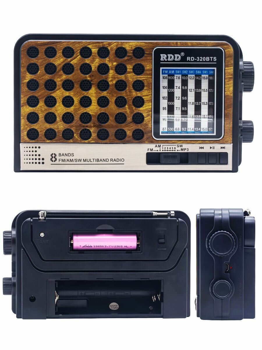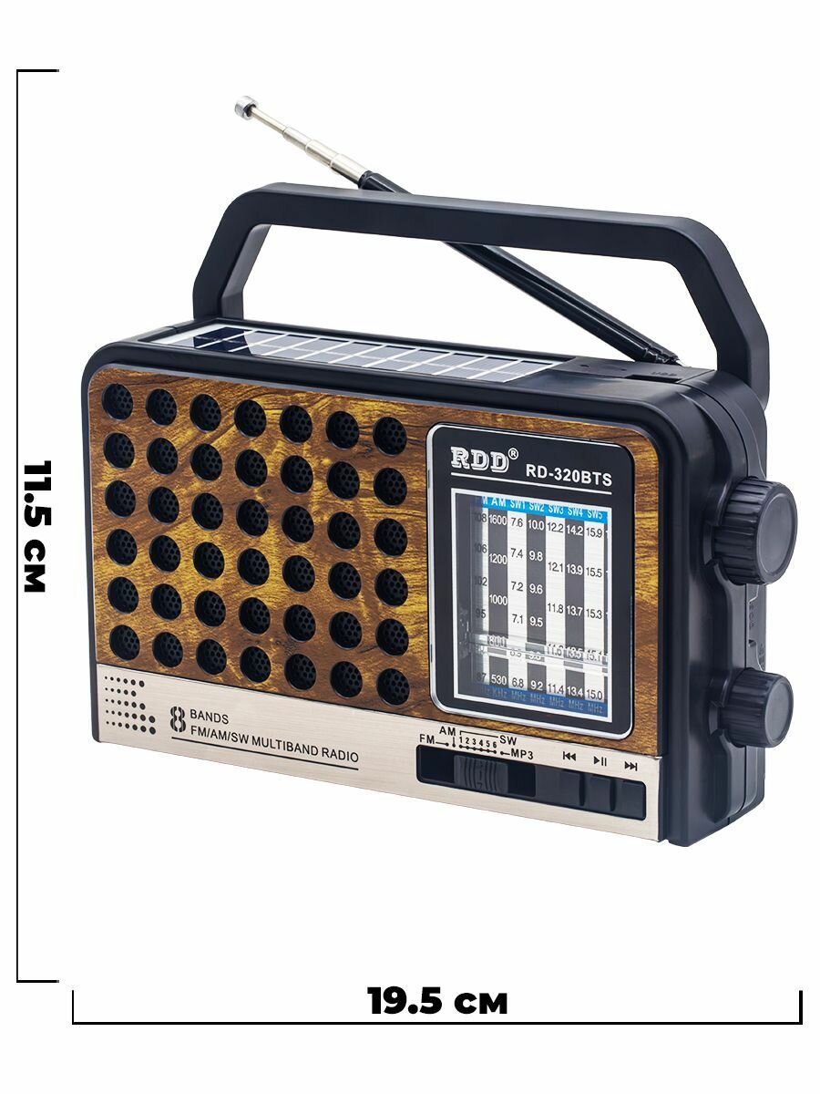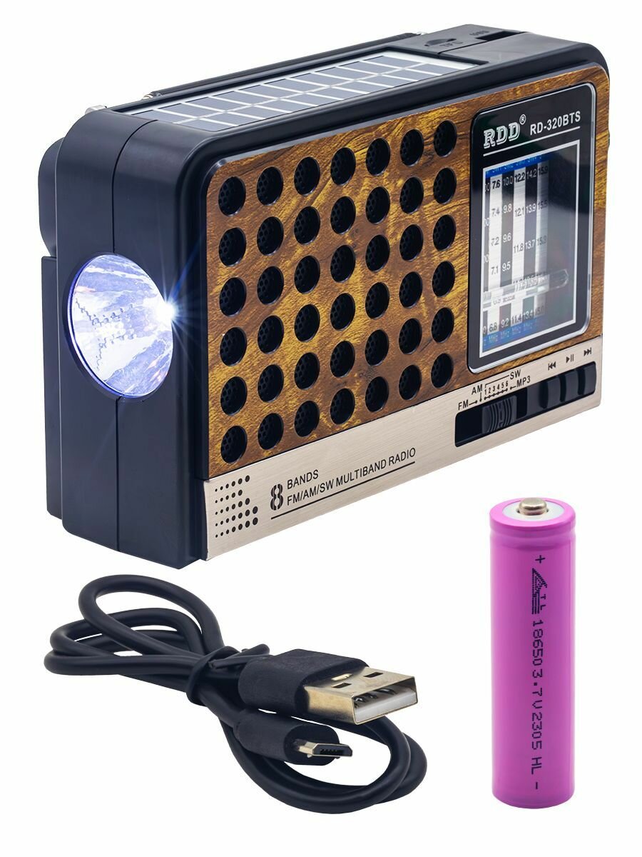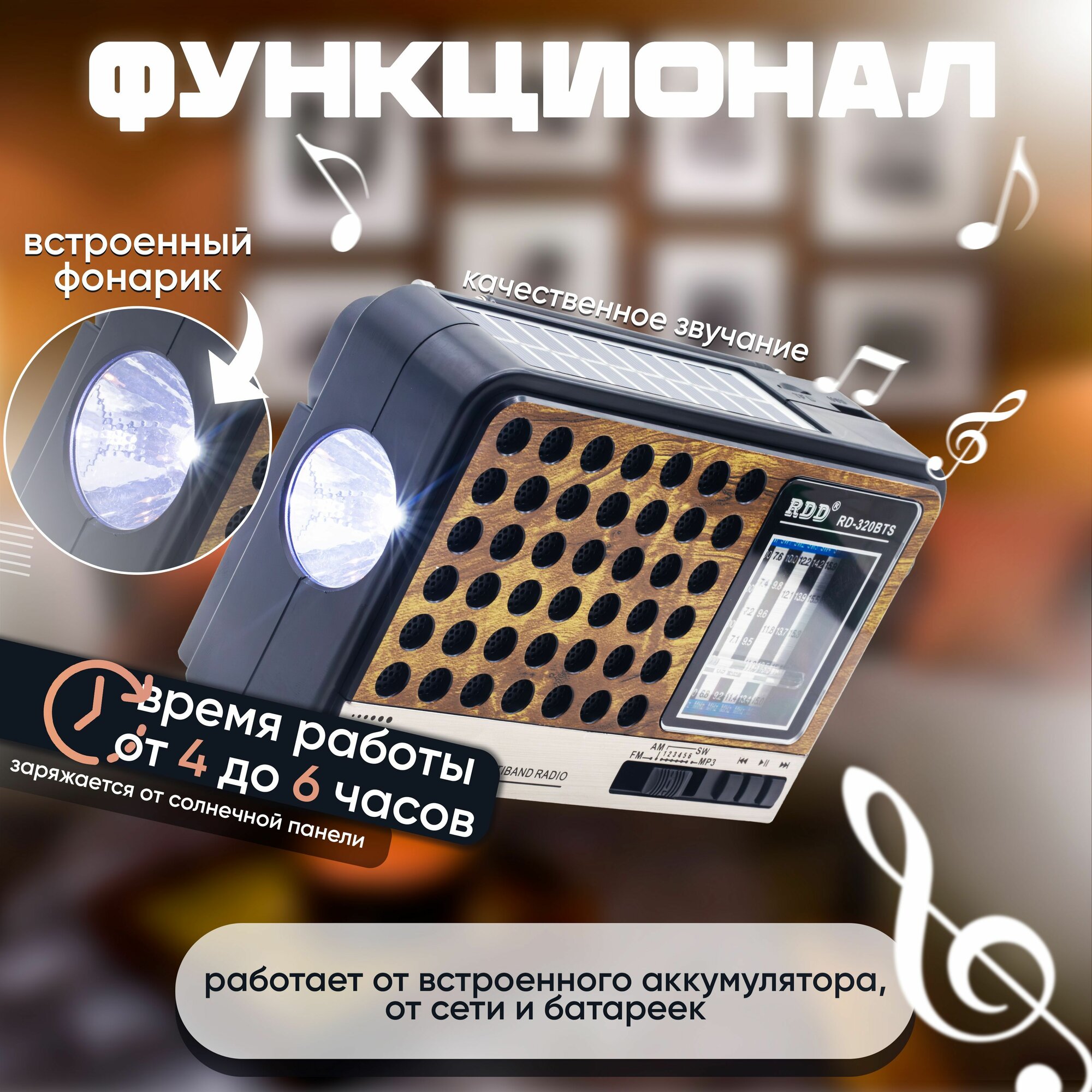 Портативный радиоприемник радио с фонариком RD-320BTS коричневый интересное: