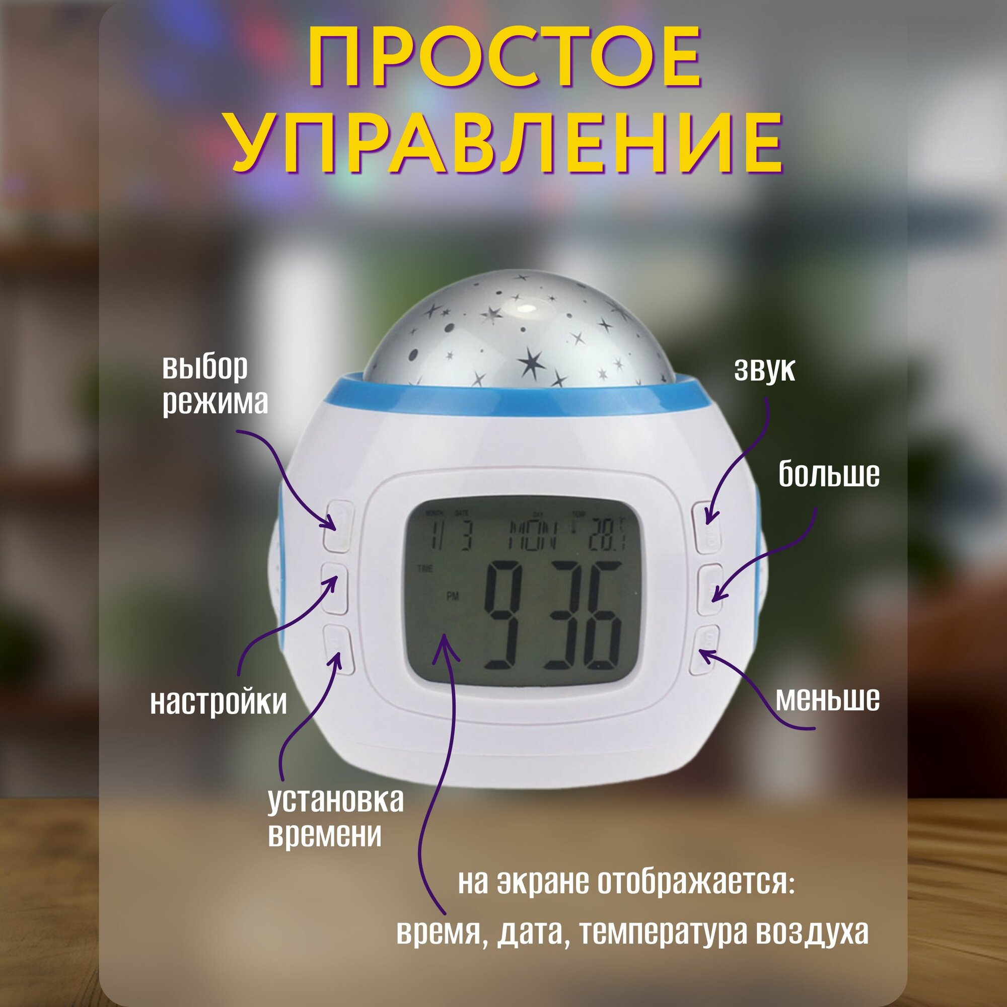 Часы-будильник с проекцией звездного неба, звездный ночник будильник интересное: