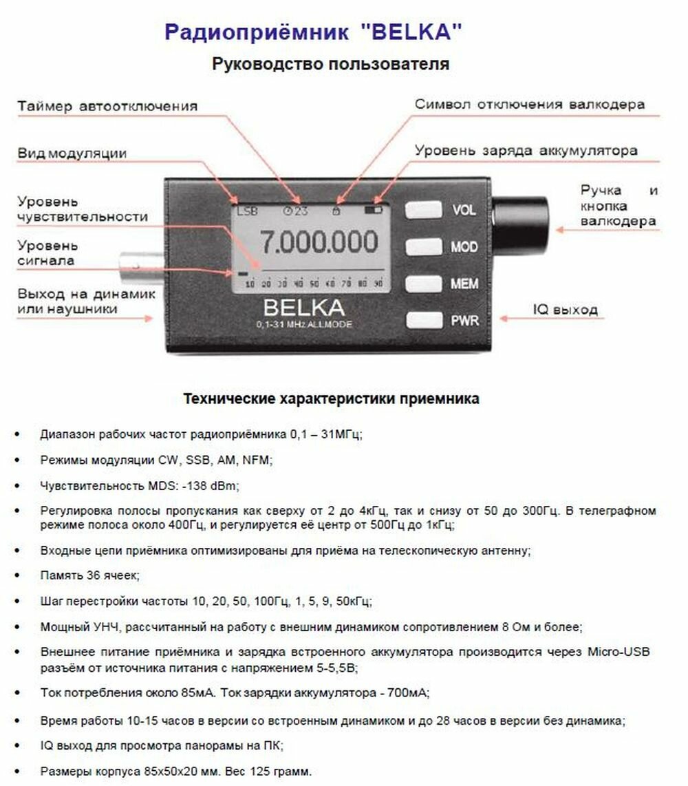 КВ радиоприемник Belka 0.1-31Mhz с динамиком интересное: