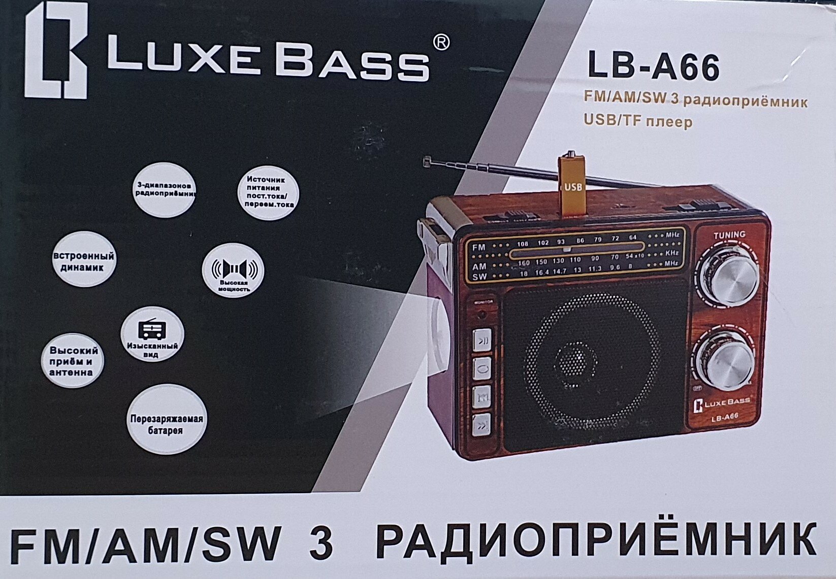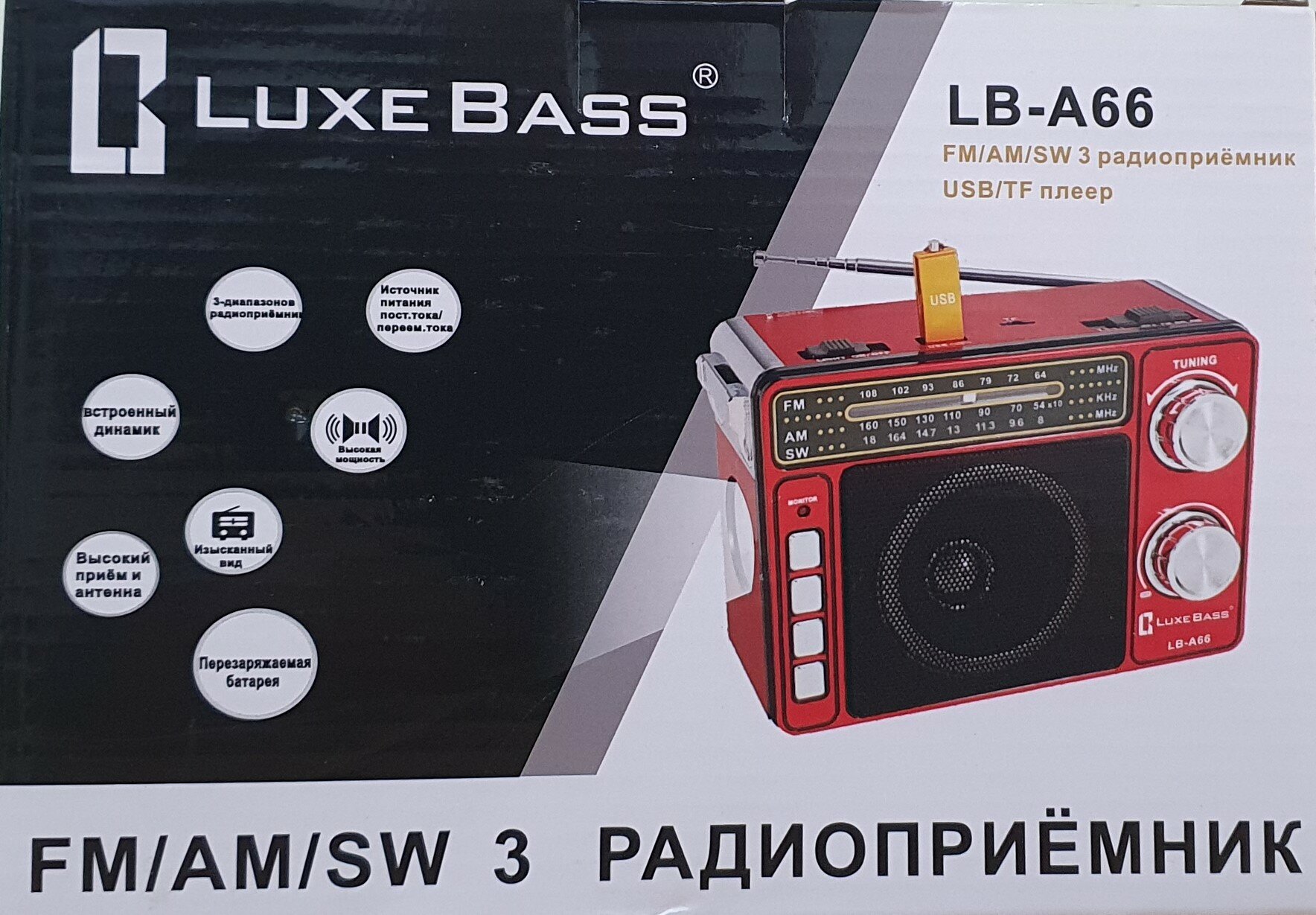 Сетевой переносной радиоприемник Luxe Bass LB-A66 интересное: