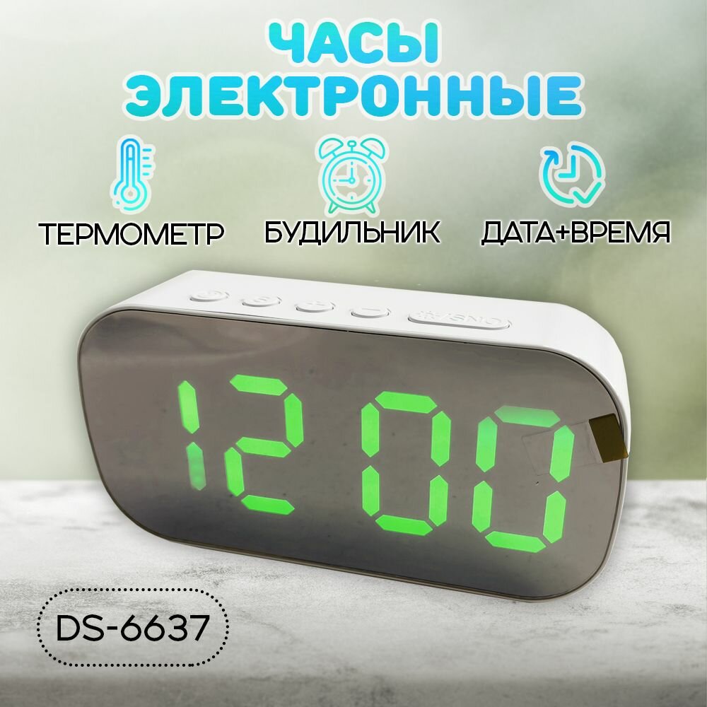 Часы настольные электронные DS-6637 с термометром, цвет - бело-зеленые интересное: