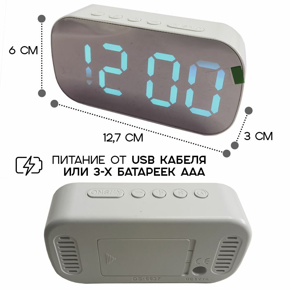 Часы настольные электронные DS-6637 с термометром, цвет - бело-голубые интересное: