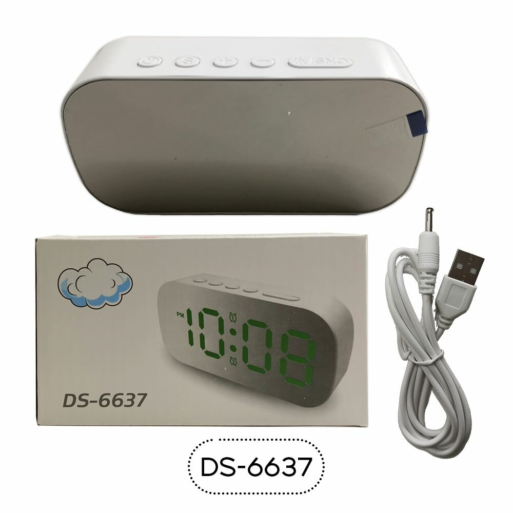 Часы настольные электронные DS-6637 с термометром, цвет - бело-зеленые