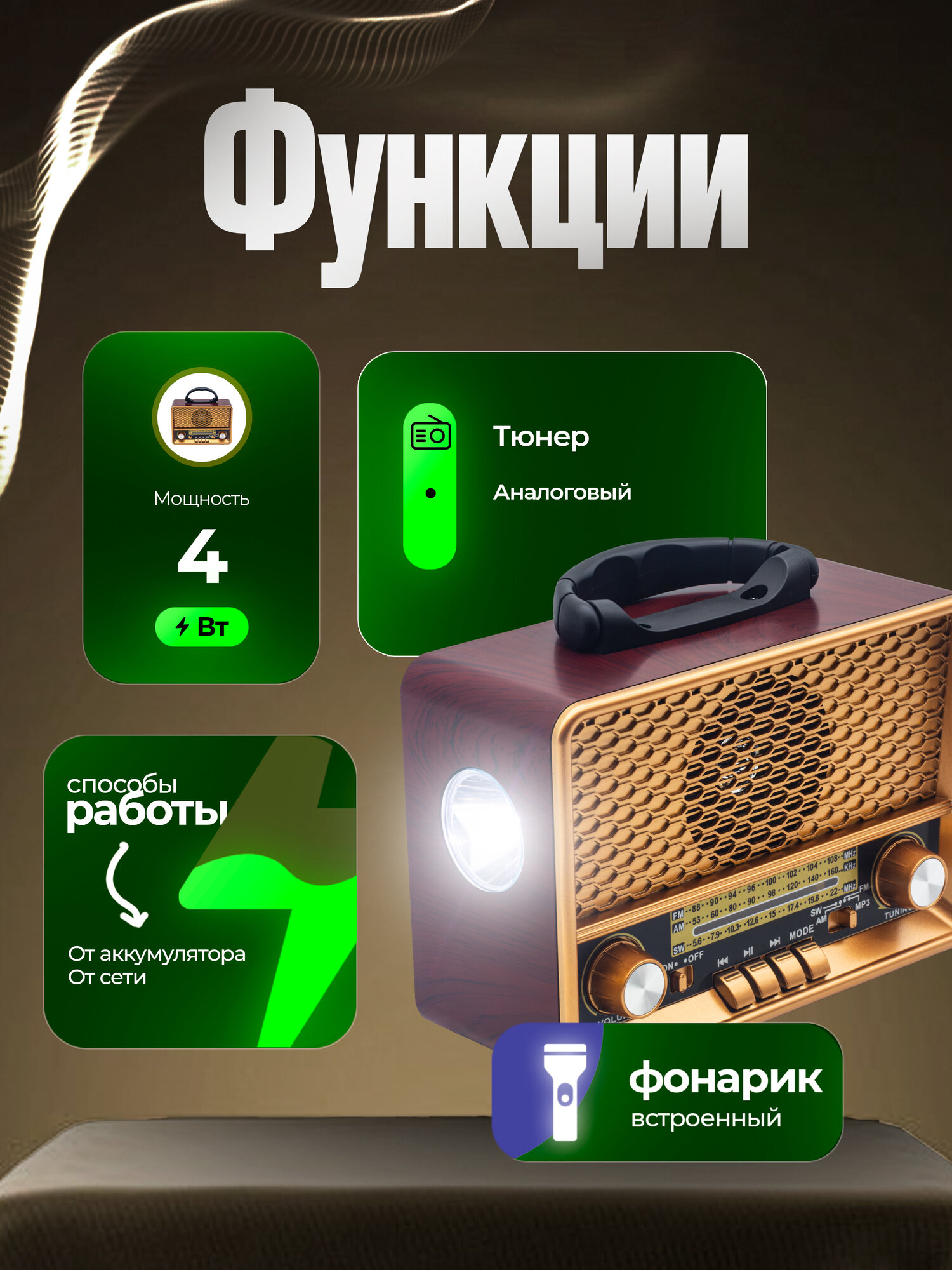 Радиоприемник RAISENG R-7199BT золотой с блютузом интересное: