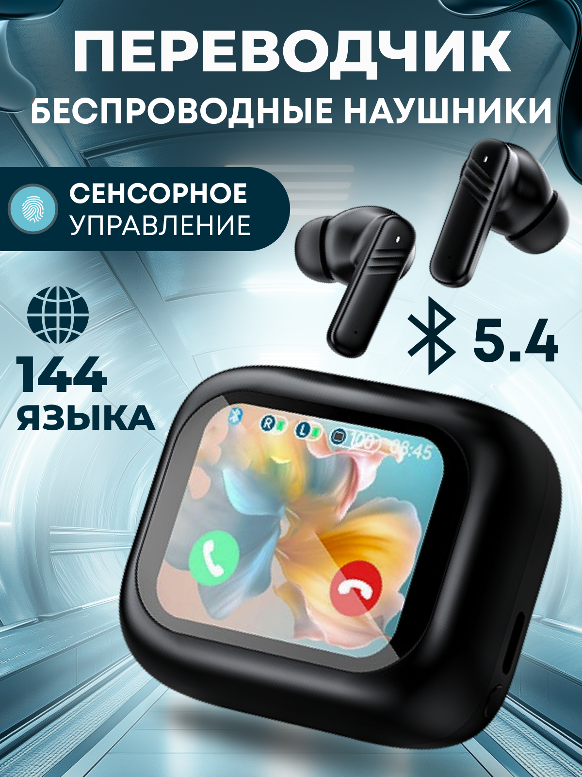 Наушники переводчики с сенсорным дисплеем, голосовой переводчик 144 языка без интернета, чёрный интересное: