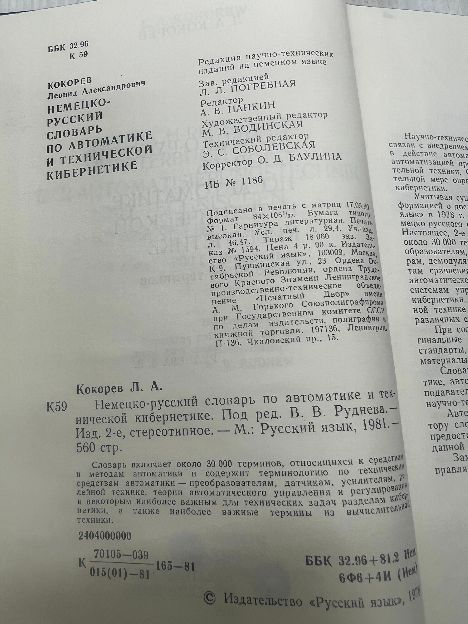 Кокорев Л. А. Немецко-русский словарь по автоматике и технической кибернетике Русский язык 1981г интересное: