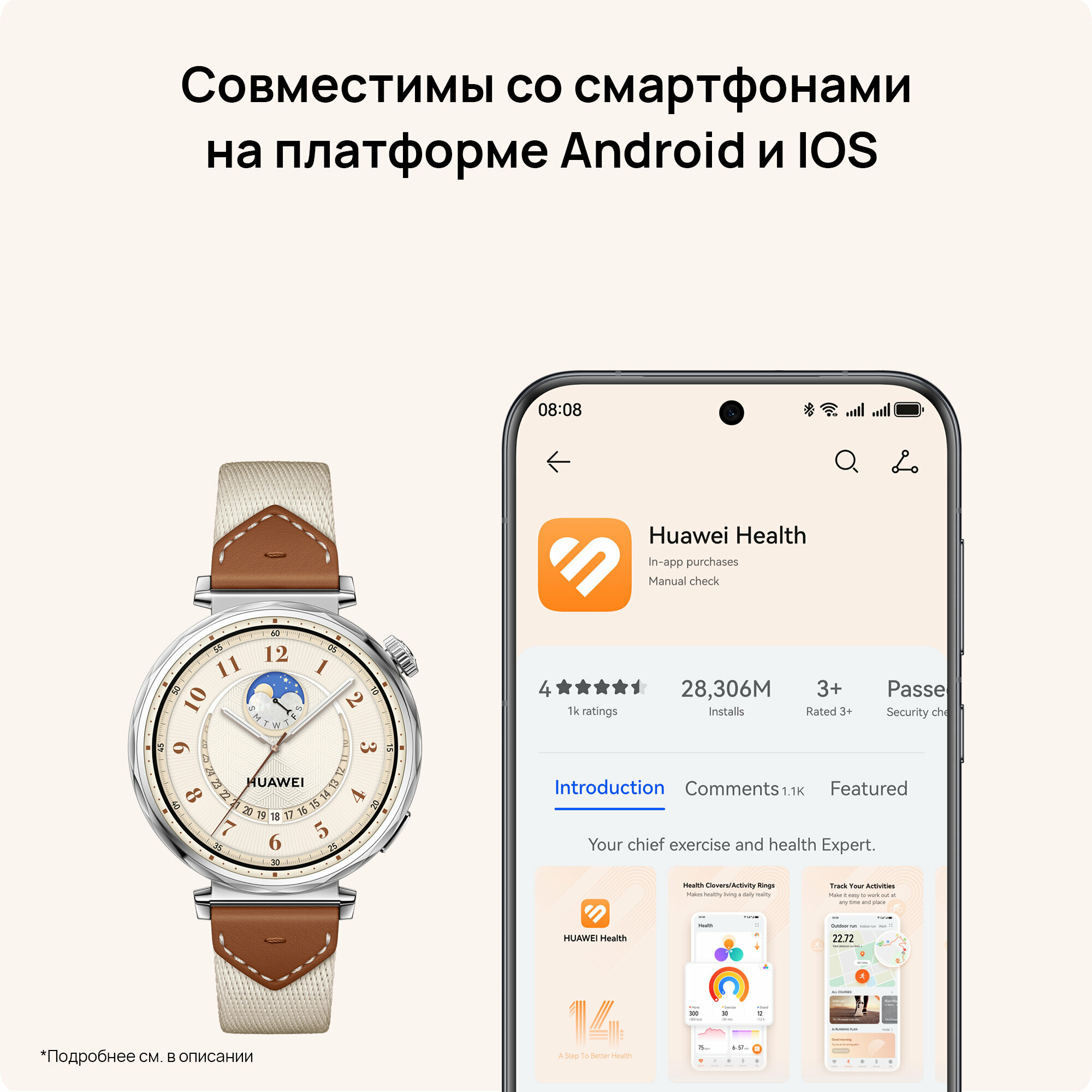 Смарт-часы Huawei GT 5, 41мм, AMOLED, беспроводная зарядка, Android, IP68