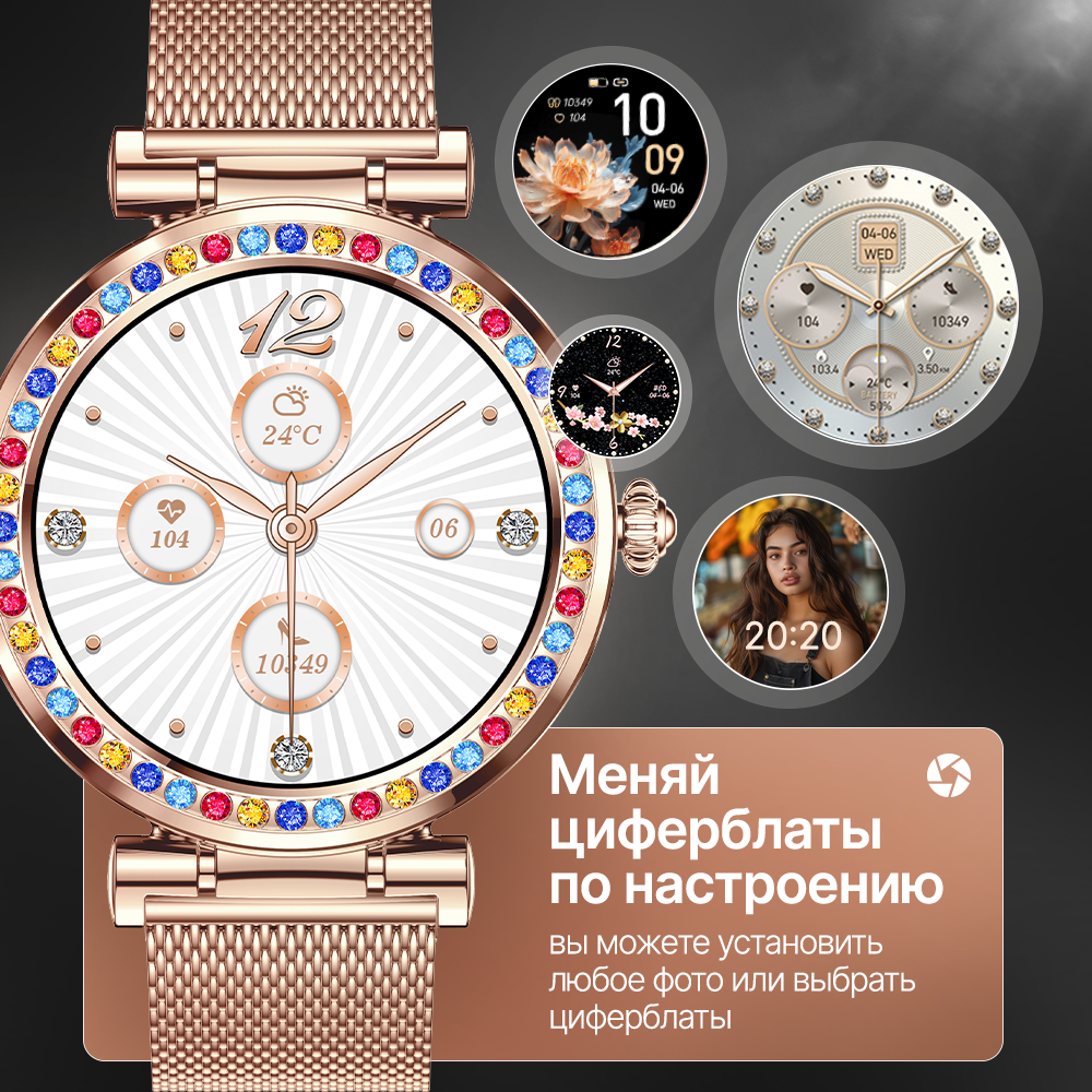 Смарт часы женские круглые "Besttime" умные наручные с функцией звонка для iOS и Android, водонепроницаемые интересное: