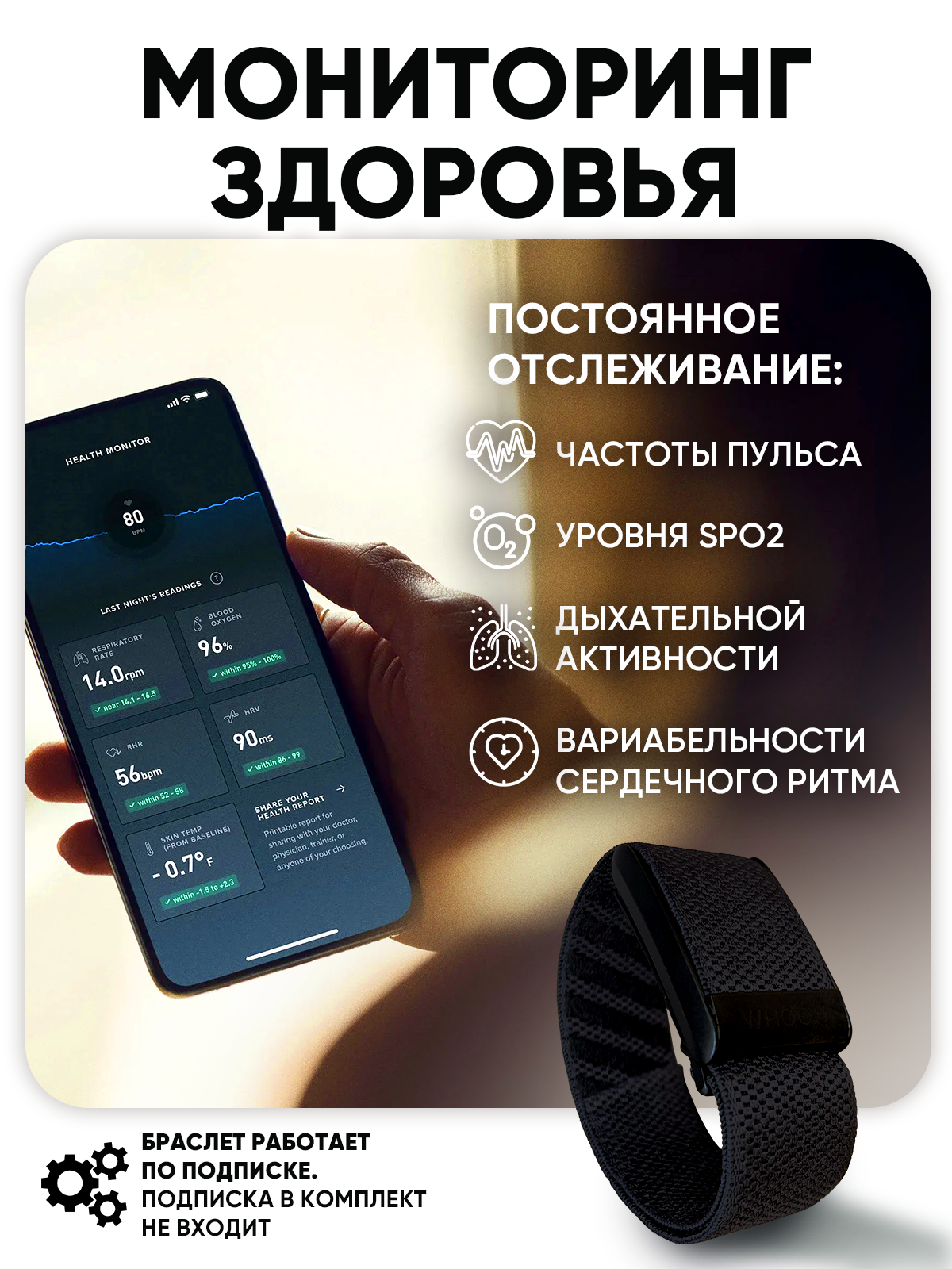 Фитнес-браслет Whoop 4.0 черный для мониторинга здоровья + 30 дней подписки интересное: