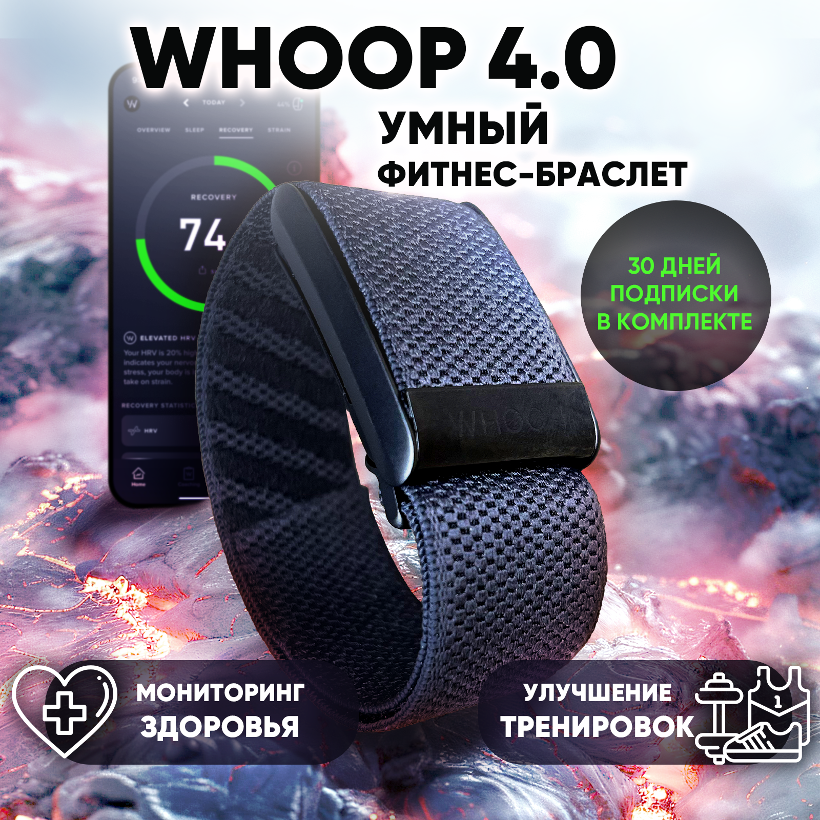 Купить Фитнес-браслет Whoop 4.0 черный для мониторинга здоровья + 30 дней подписки