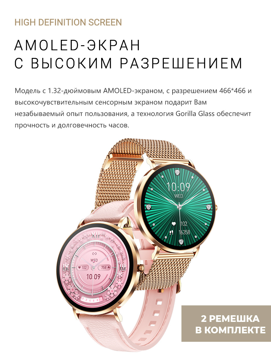 Смарт-часы наручные SMART PRESENT DA8 женские, круглые, с функцией телефона, с большим дисплеем, золотистые, металл интересное: