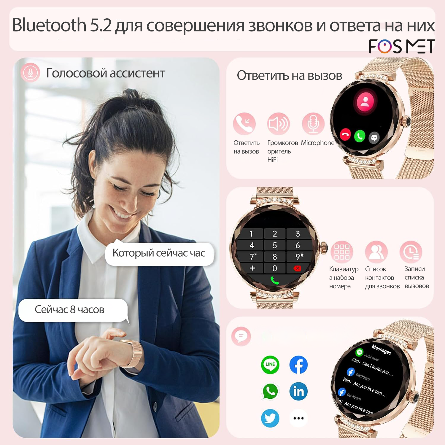 FOSMET Смарт часы женские круглые умные наручные, AMOLED, Bluetooth Talking Smartwatch интересное: