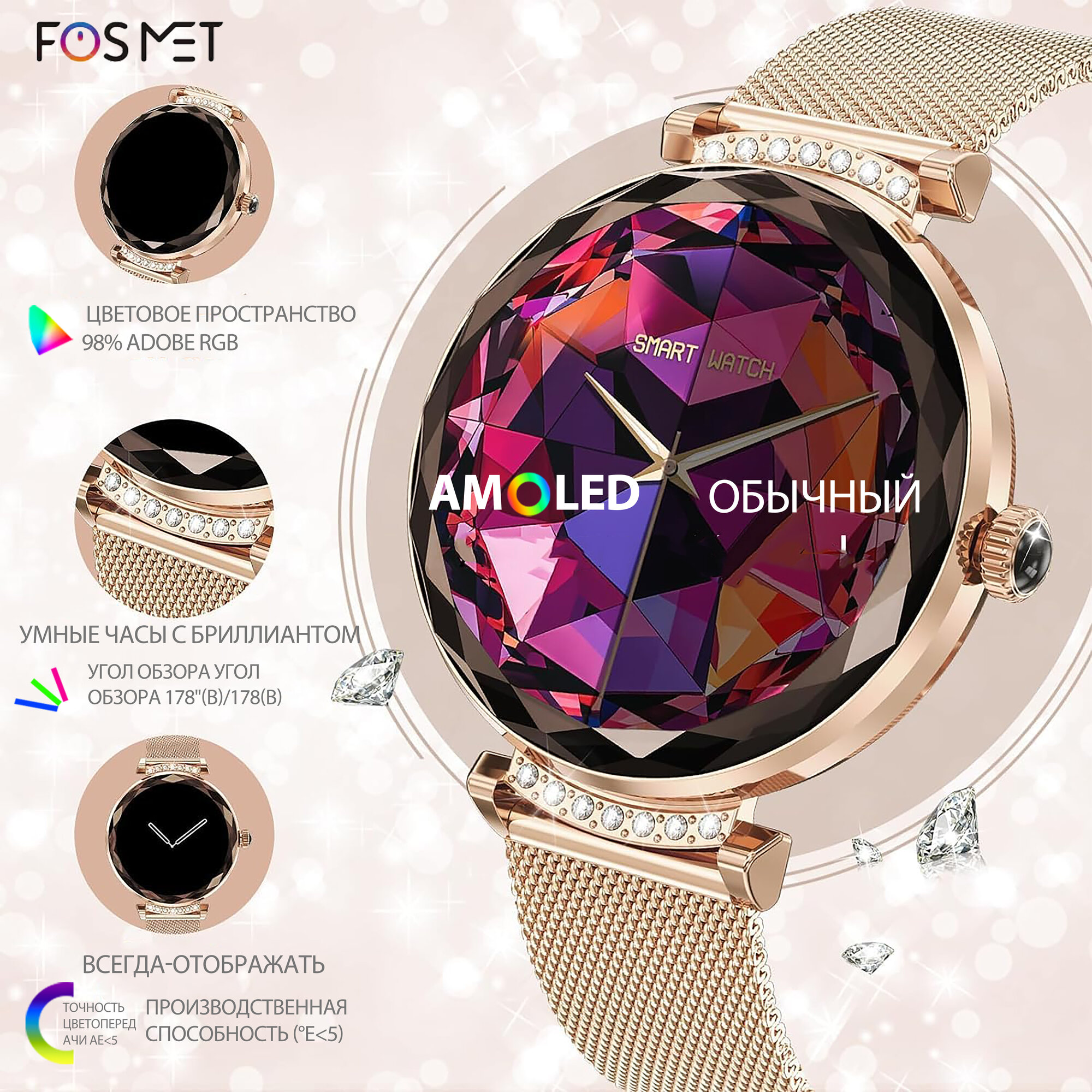 Купить FOSMET Смарт часы женские круглые умные наручные, AMOLED, Bluetooth Talking Smartwatch