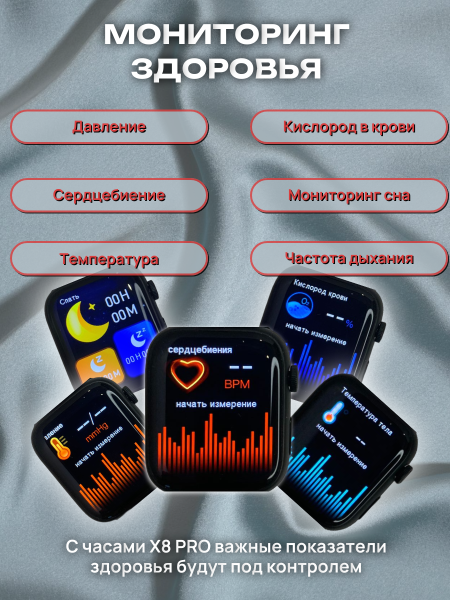 Смарт, умные наручные часы X8 PRO премиум, Smart Watch IOS Android, 45мм черные интересное: