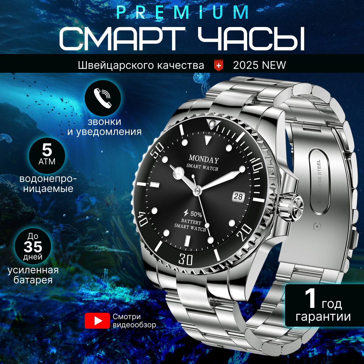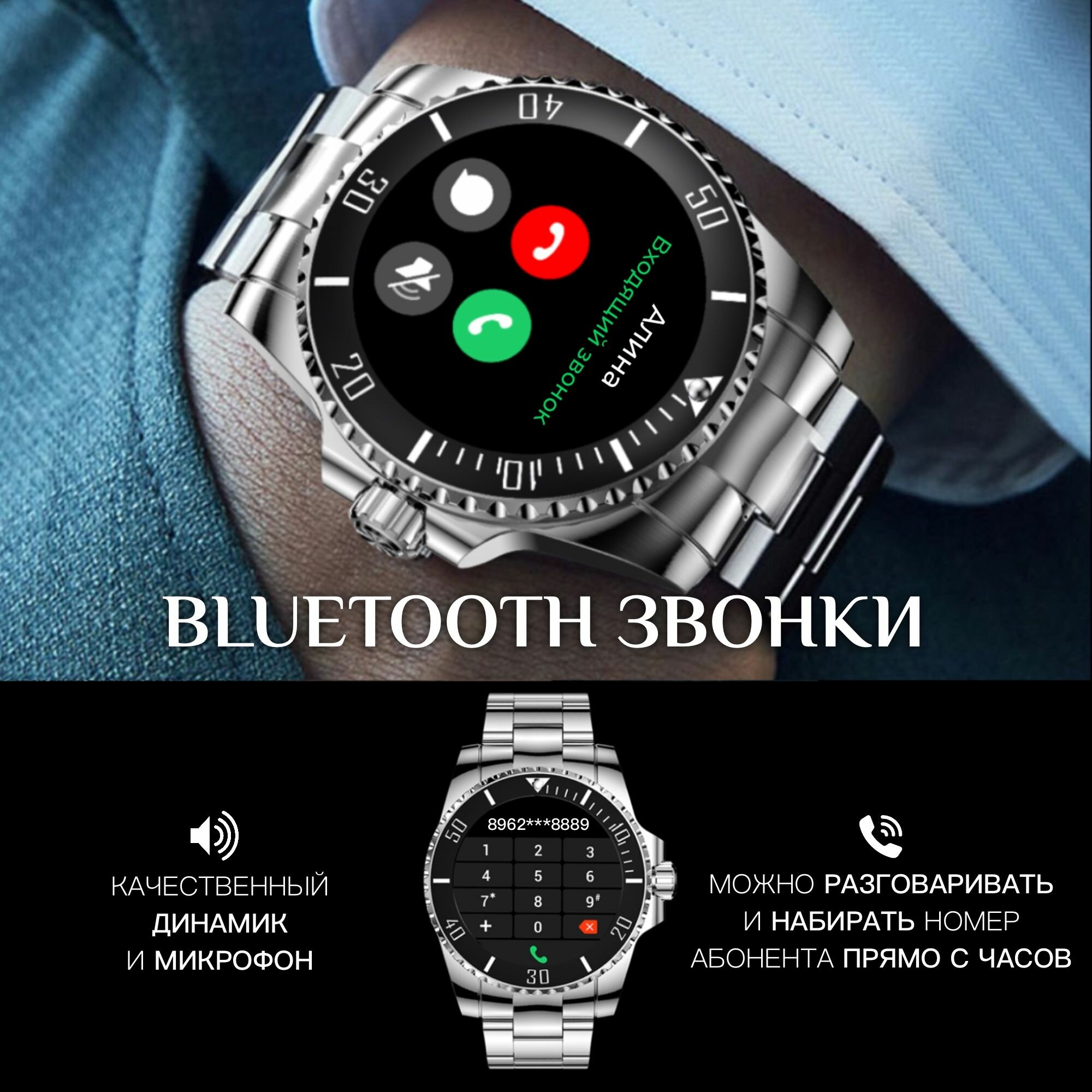 Смарт часы мужские круглые водонепроницаемые с bluetooth звонками / умные часы из стали с измерением пульса, кислорода интересное: