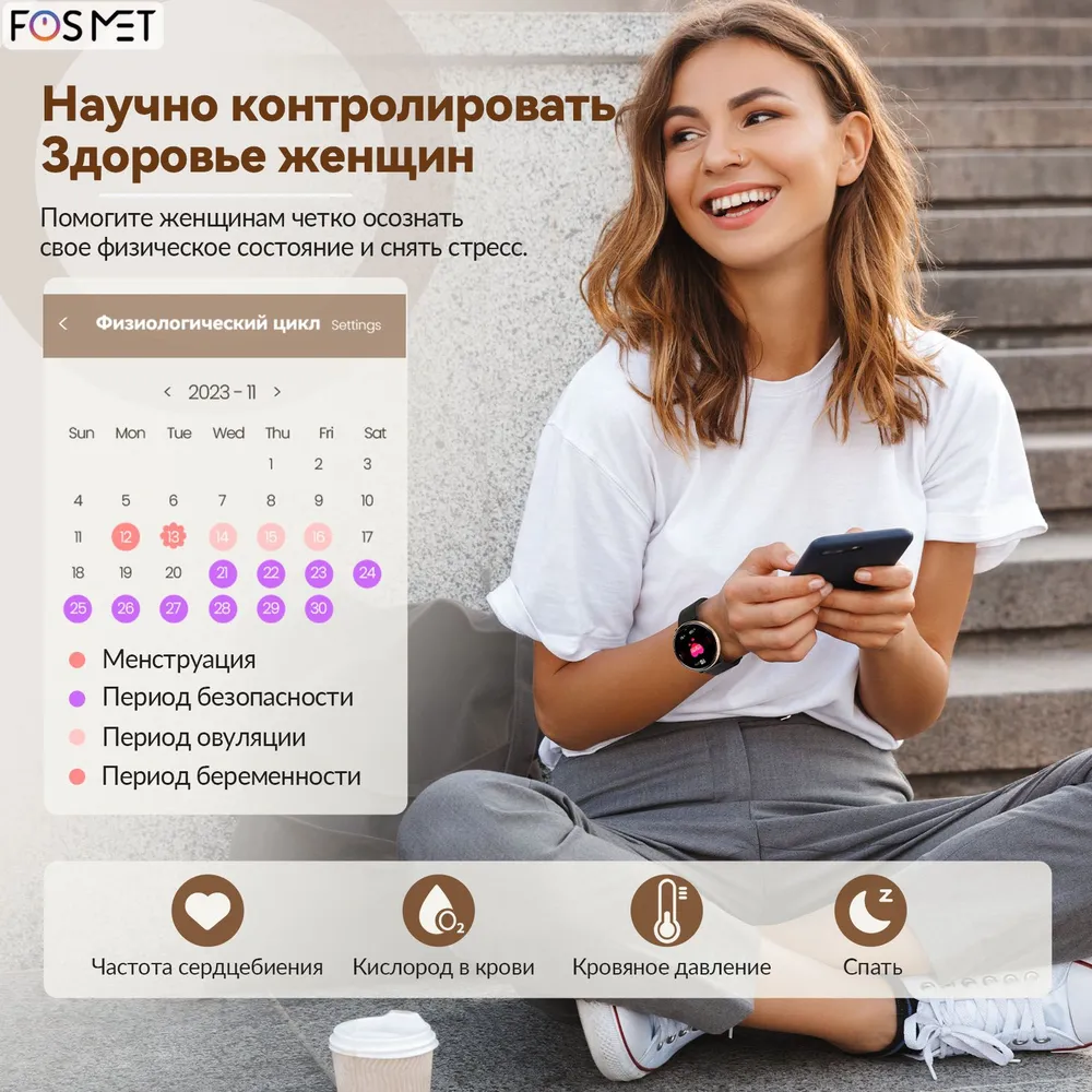 Смарт-часы женские, умные часы с AMOLED-экраном FOSMET HD, Подарок на день рождения/Новый год интересное: