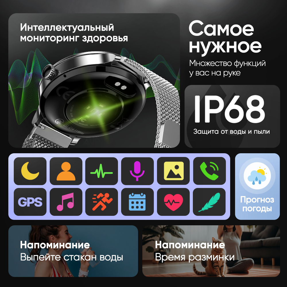 Смарт часы женские, умные наручные с функцией звонка для iOS и Android, водонепроницаемые интересное: