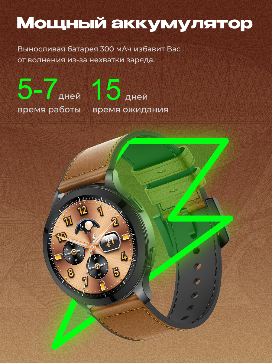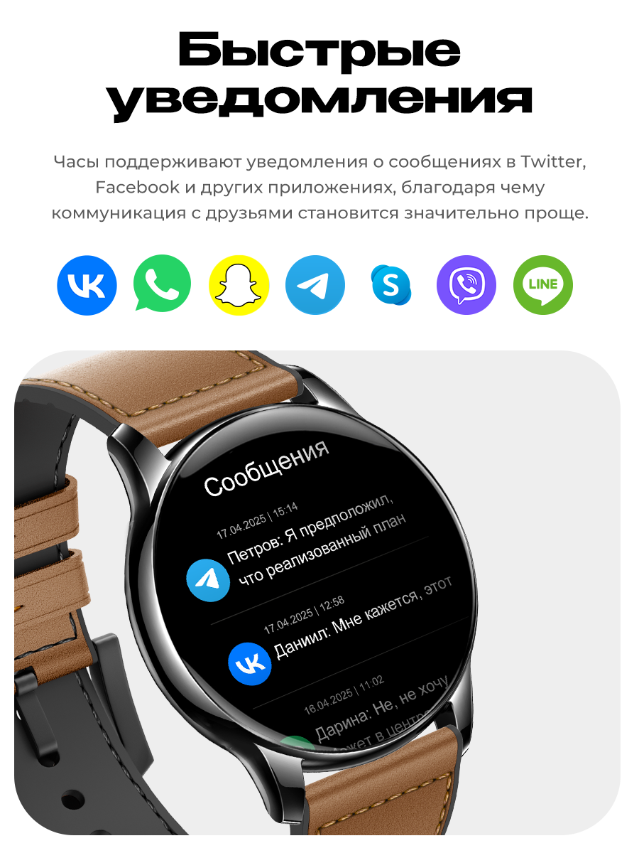 Купить Смарт-часы умные наручные SMART PRESENT LW77 мужские, круглые, с большим дисплеем, коричневые, кожаные