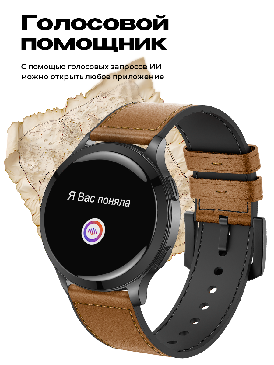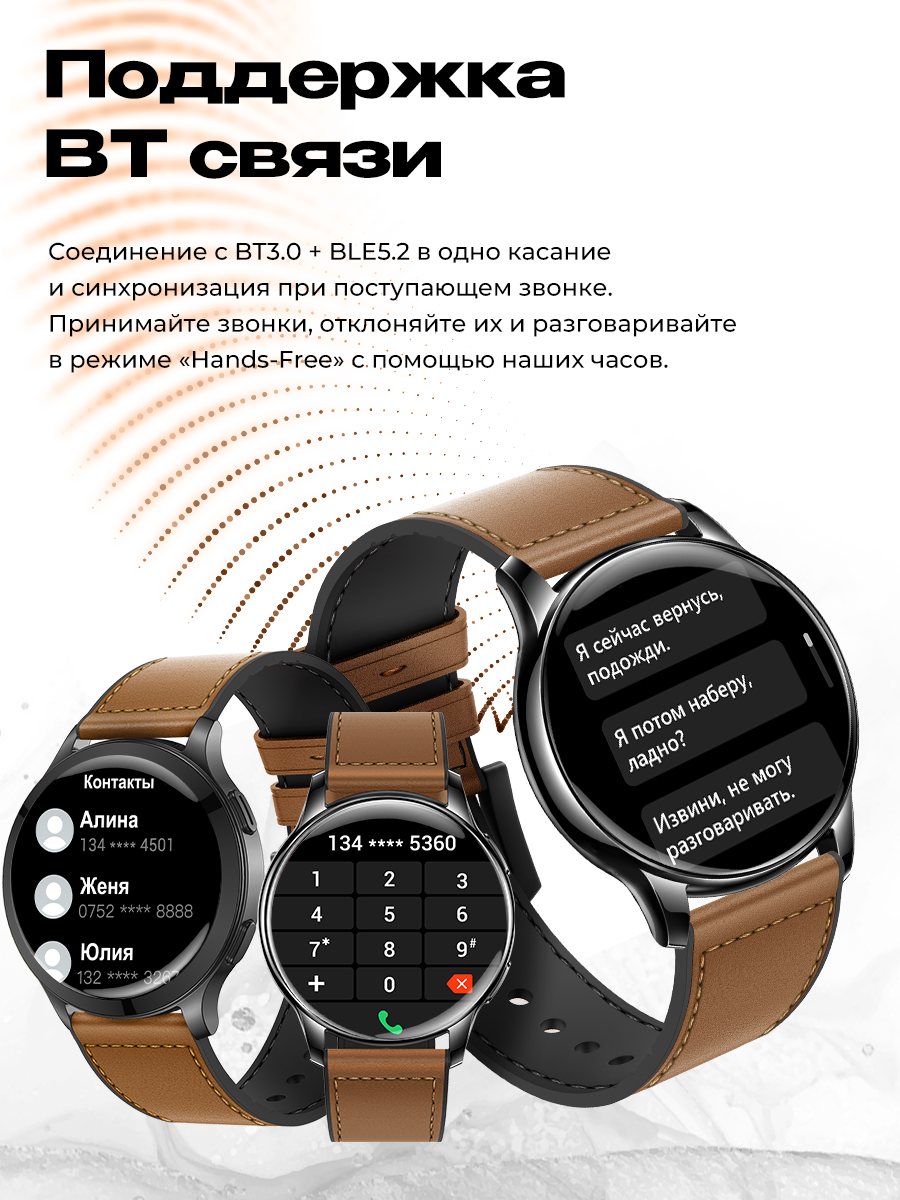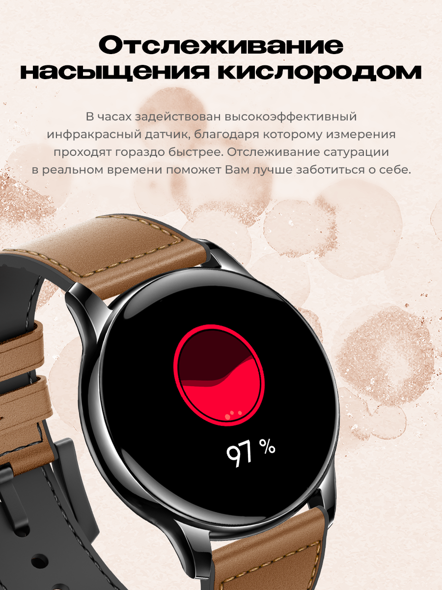 Смарт-часы умные наручные SMART PRESENT LW77 мужские, круглые, с большим дисплеем, коричневые, кожаные интересное: