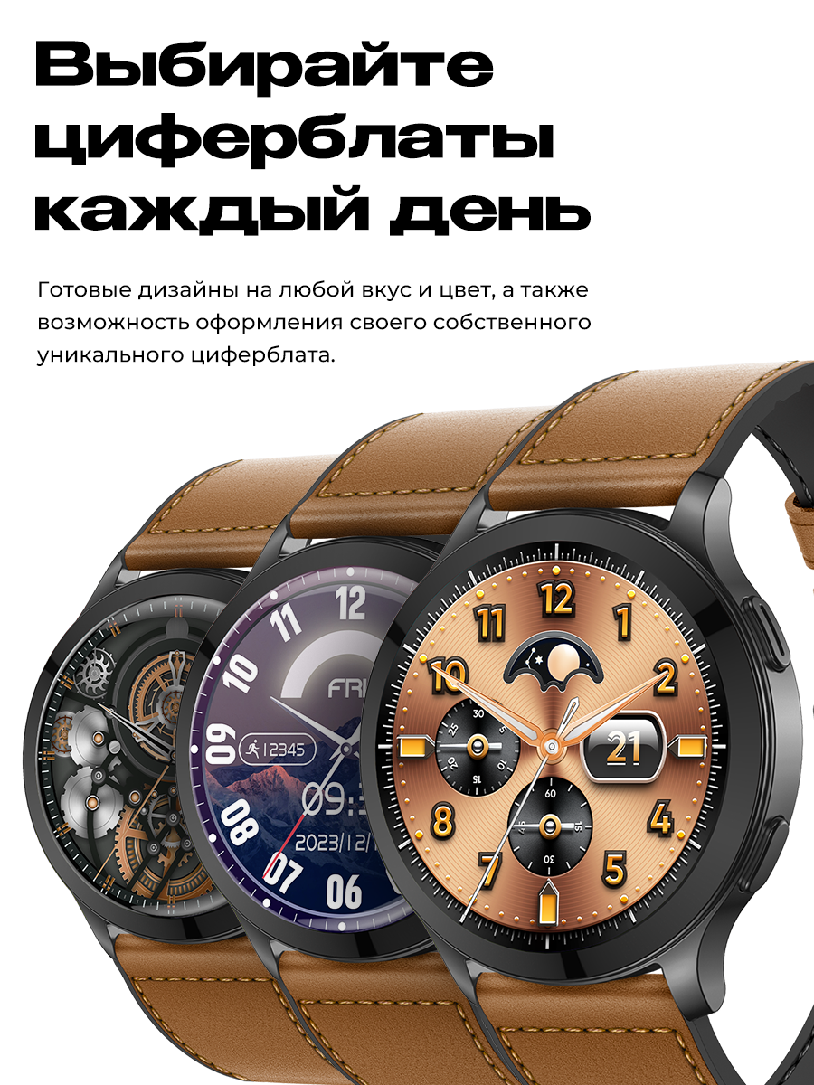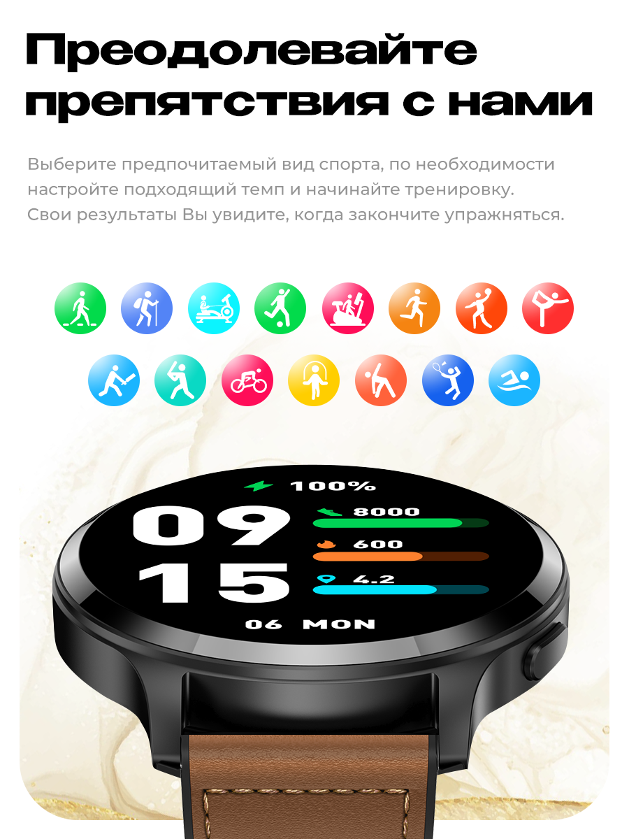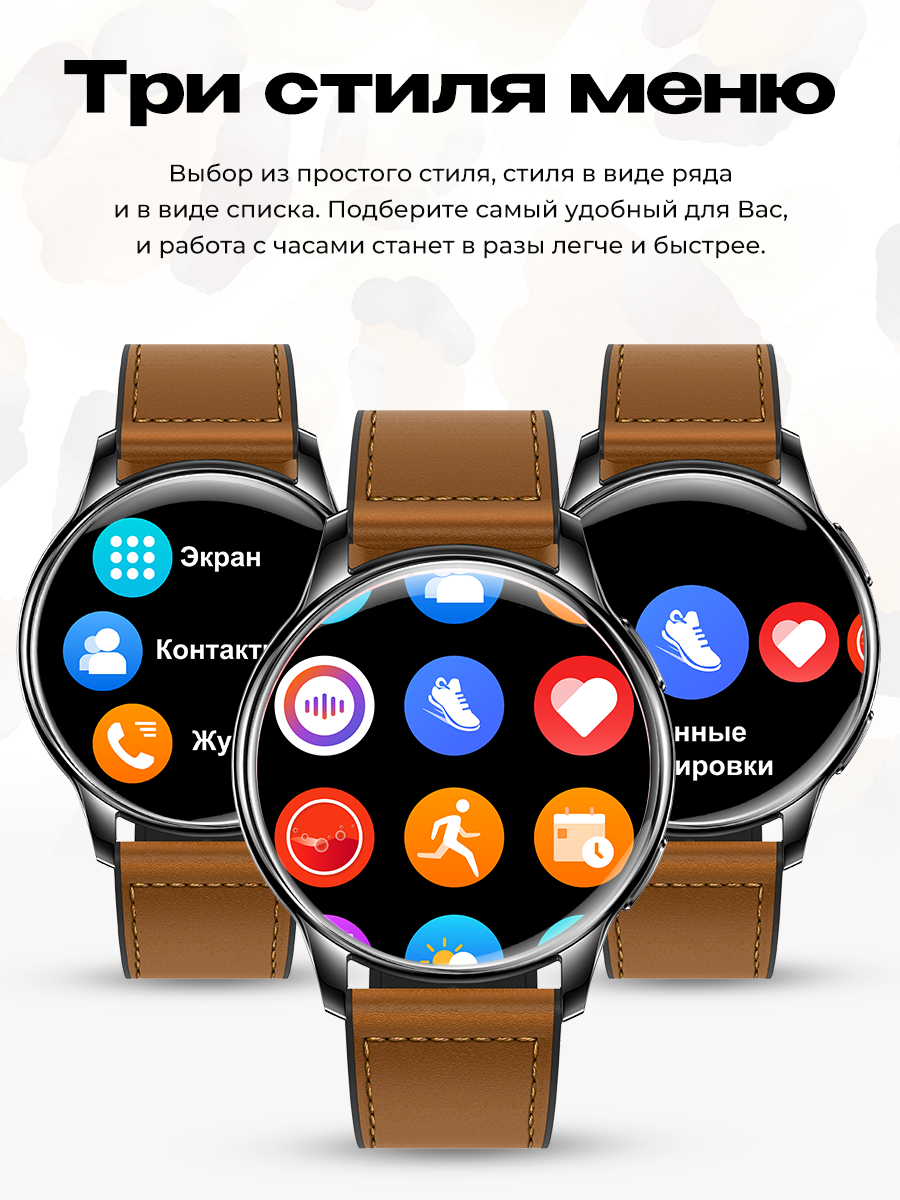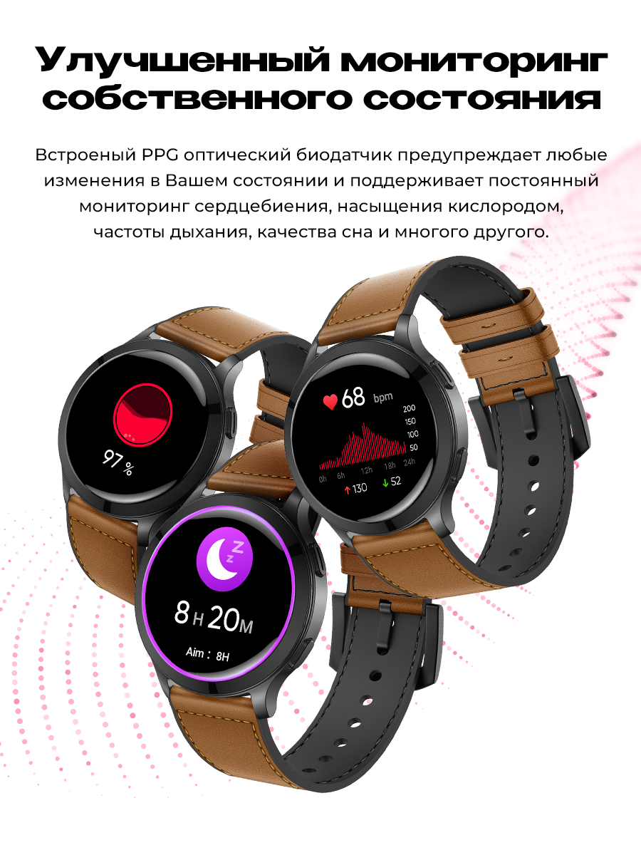 Смарт-часы умные наручные SMART PRESENT LW77 мужские, круглые, с большим дисплеем, коричневые, кожаные интересное: