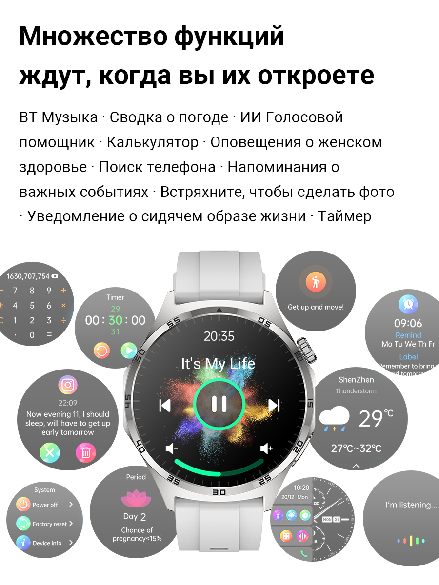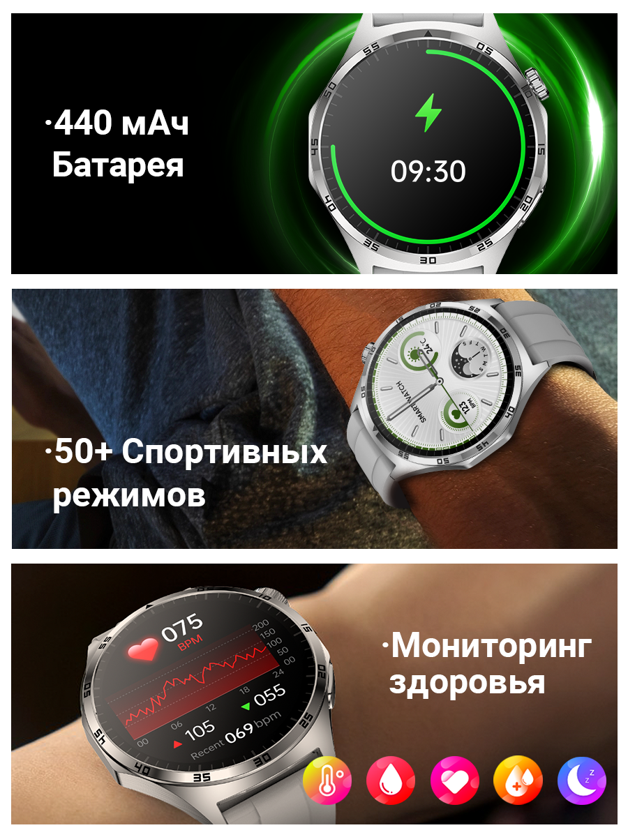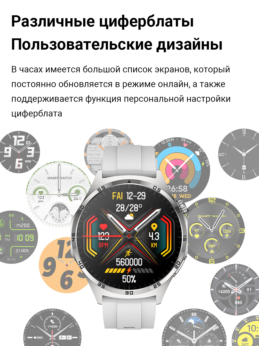 Смарт-часы умные наручные SMART PRESENT FM13 мужские, круглые, с функцией телефона, водонепроницаемые, серые интересное: