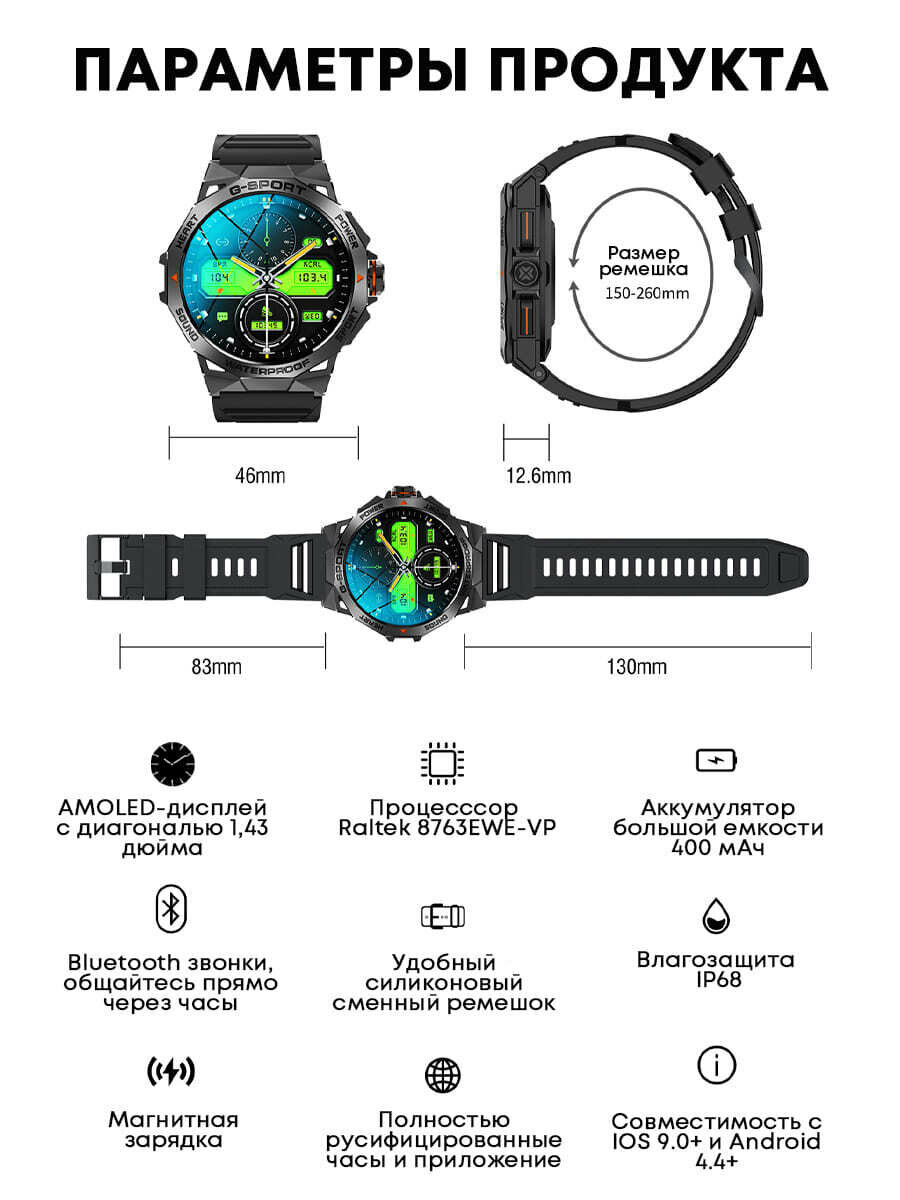 Lemfo Умные cмарт часы K62 с bluetooth звонком (Черный) интересное:
