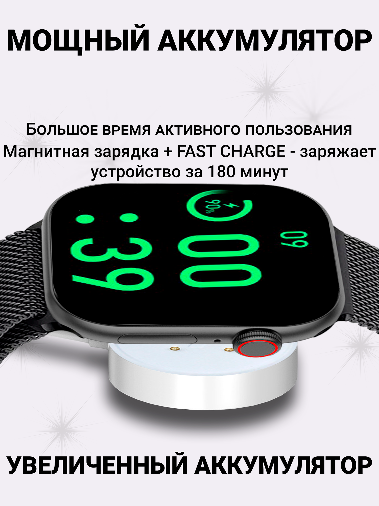 Умные часы WATCH X10, Смарт часы watch X, premium smart watch, 47 мм с NFC, 2 ремешка, Черный
