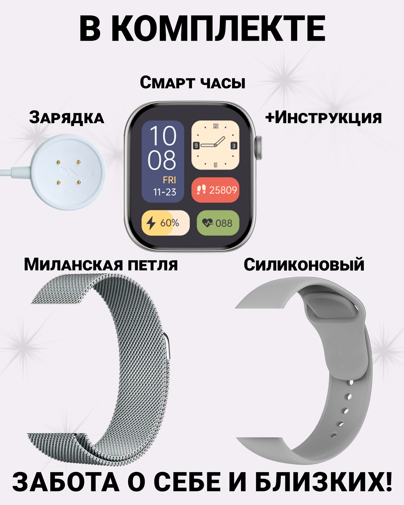 СохранитьУмные часы WATCH X10, Смарт часы watch X, premium smart watch, 47 мм с NFC, 2 ремешка, Серебристый интересное: