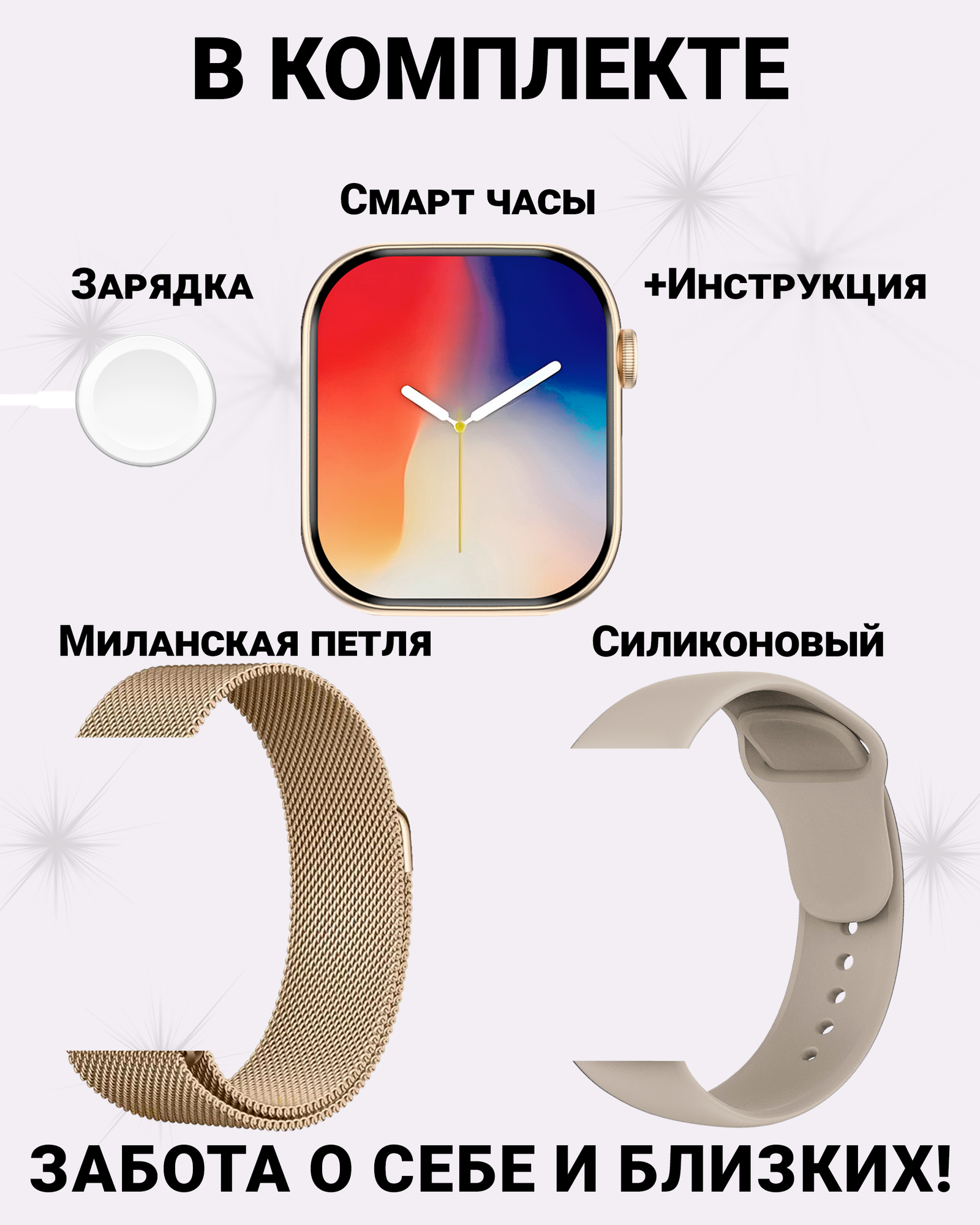 Купить Умные часы WATCH 10 Mini, Смарт часы watch 10 Mini, premium smart watch, 41 мм с GPT, 2 ремешка, Золотой