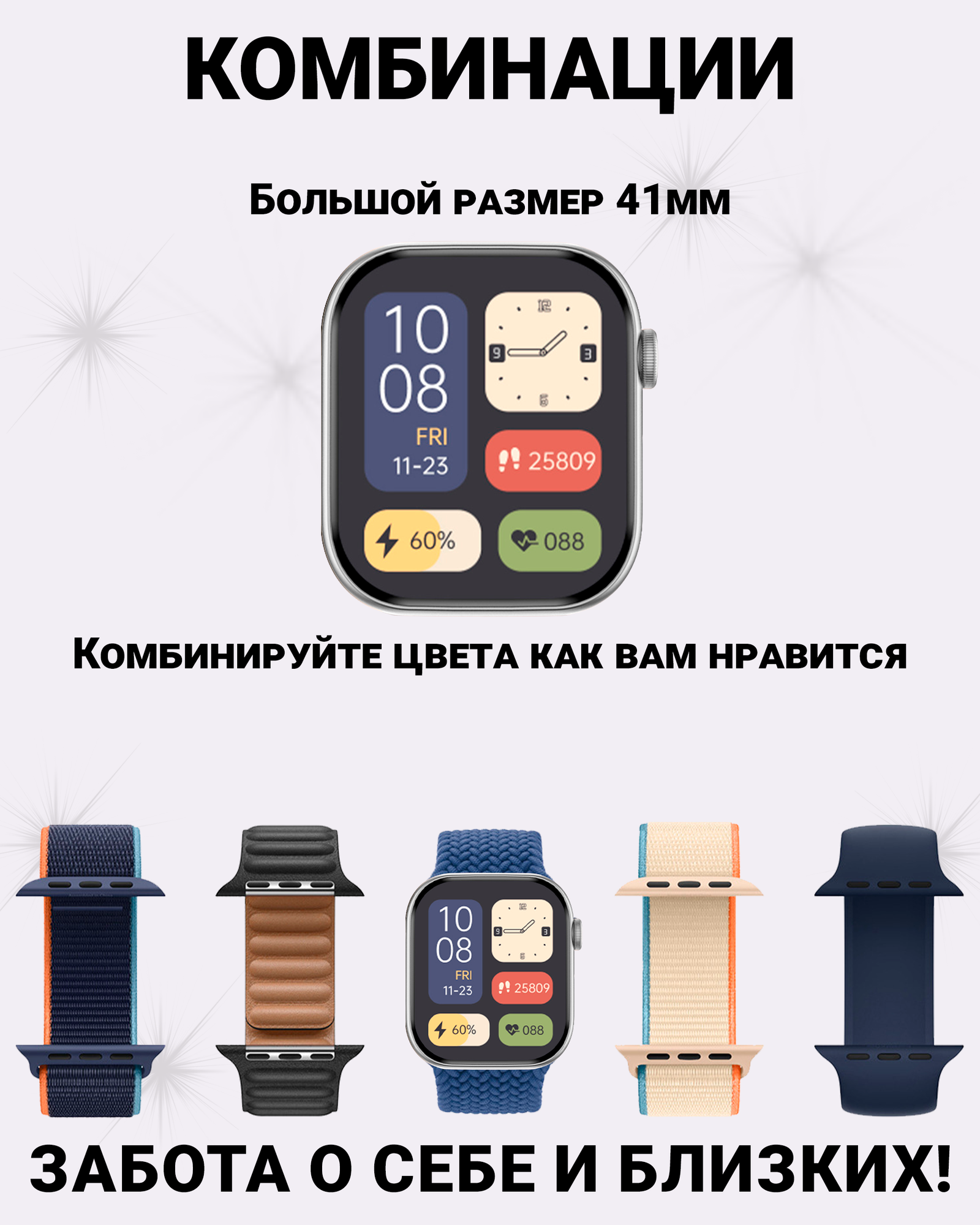 СохранитьУмные часы WATCH 10 Mini, Смарт часы watch 10 Mini, premium smart watch, 41 мм с GPT, 2 ремешка, Серебристый интересное: