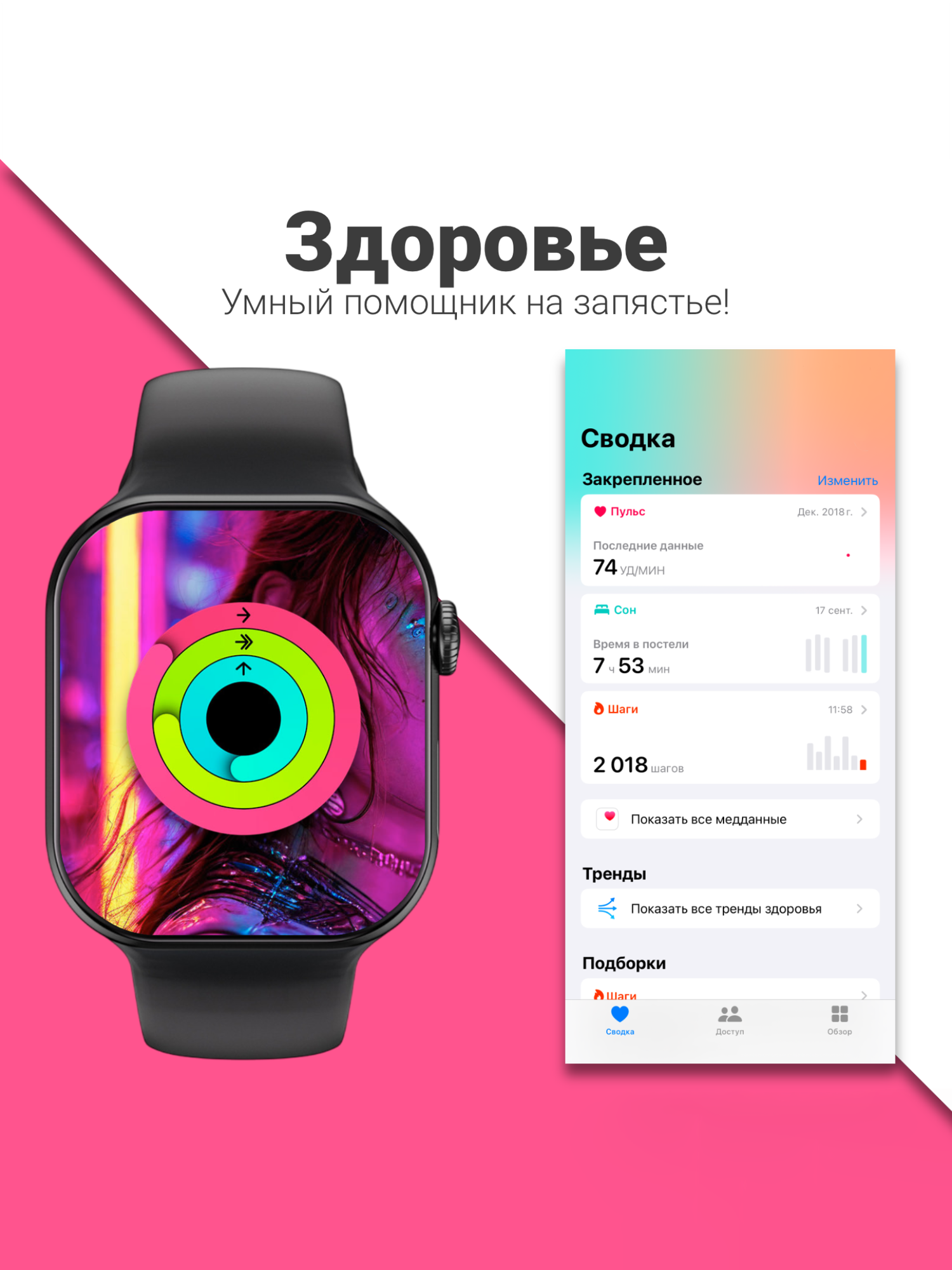 Смарт часы Lapple Watch 9 series, умные часы для девушки, парня, отображение оповещений и звонков, 2 ремешка, розовые