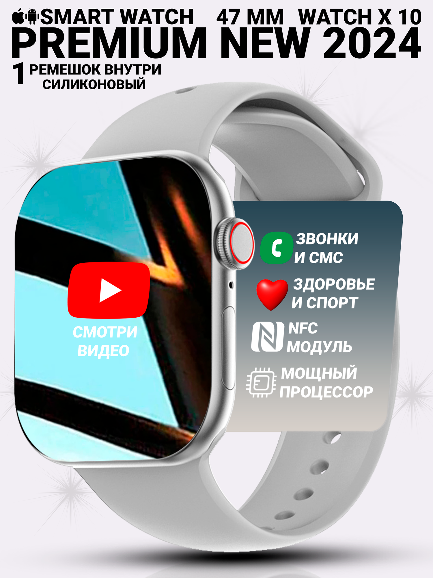 Умные смарт часы мужские и женские, Premium Smart Series 10 Pro Max, фитнес-часы с глянцевым корпусом серебристые