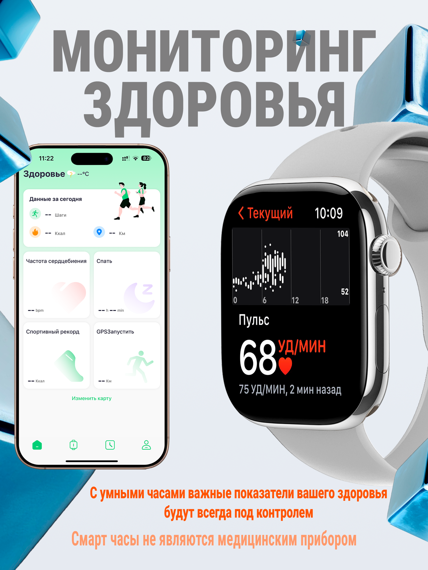 СохранитьУмные смарт часы мужские и женские, Premium Smart Series 10 Pro Max, фитнес-часы с глянцевым корпусом серебристые интересное: