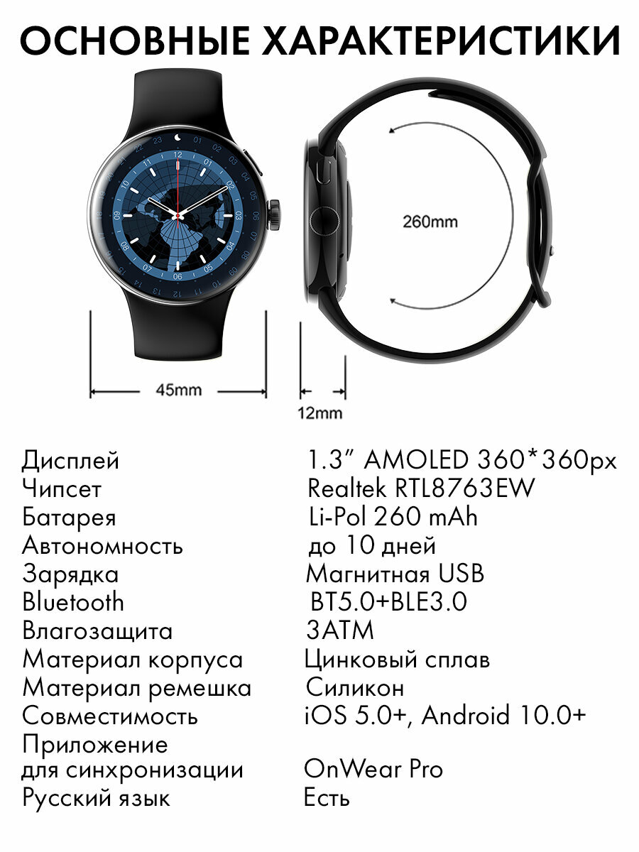 Смарт часы мужские и женские PARASMART Moon с поддержкой звонков, фитнес браслет с измерением пульса, для андроид и айфона (черный) интересное: