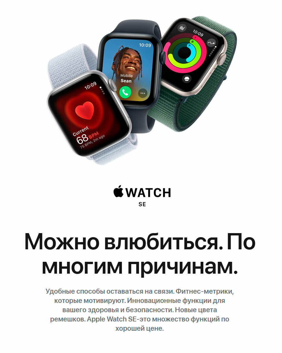 Ниже Вы можете прочитать отзывы на Умные часы Apple Watch Series SE Gen 2 2024 40 мм Aluminium Case GPS, midnight/midnight sport band, ознакомится с подробными характеристиками, посмотреть интересные обзоры и фотографии на Умные часы Apple Watch Series SE Gen 2 2024 40 мм Aluminium Case GPS, midnight/midnight sport band.