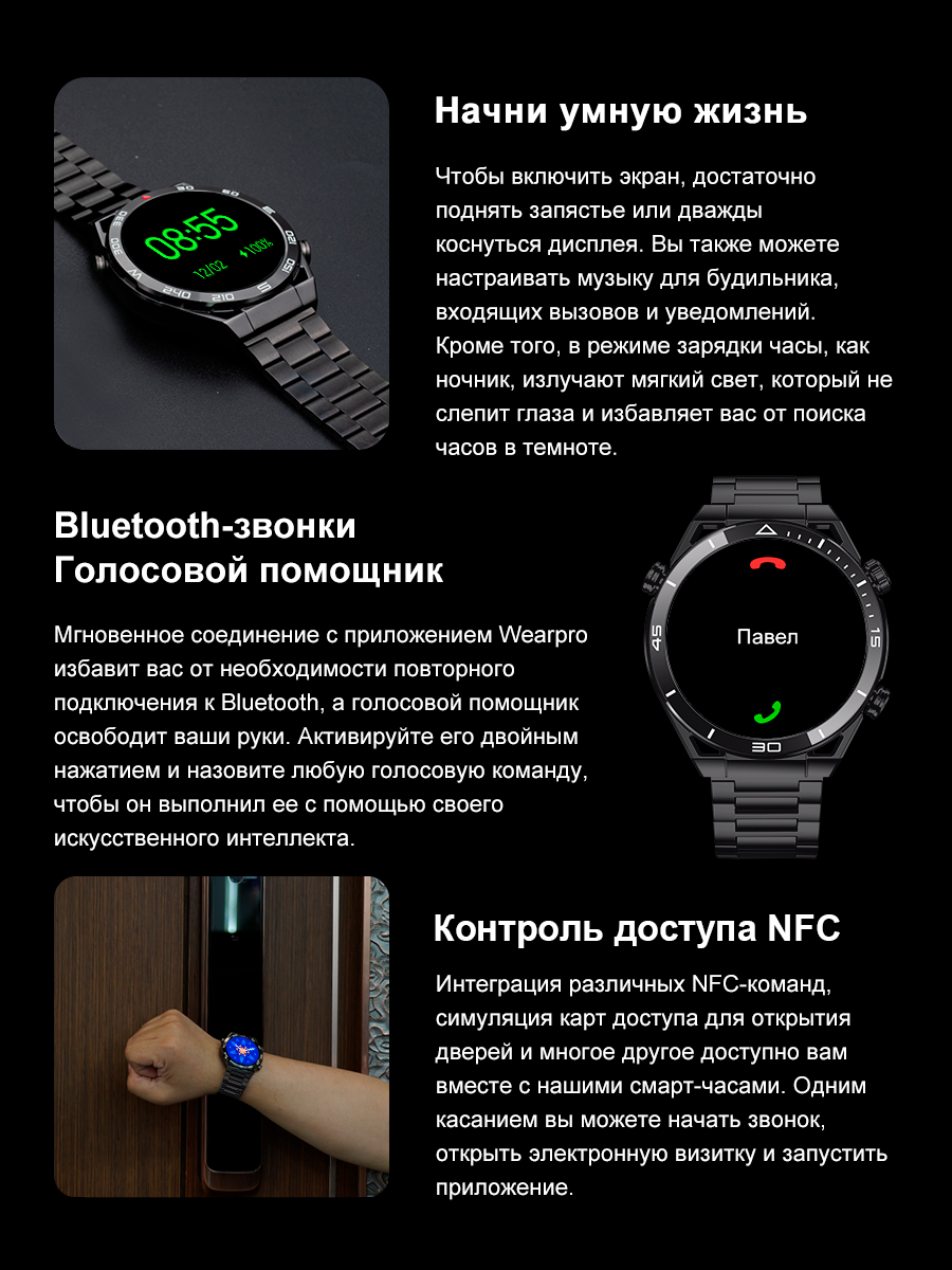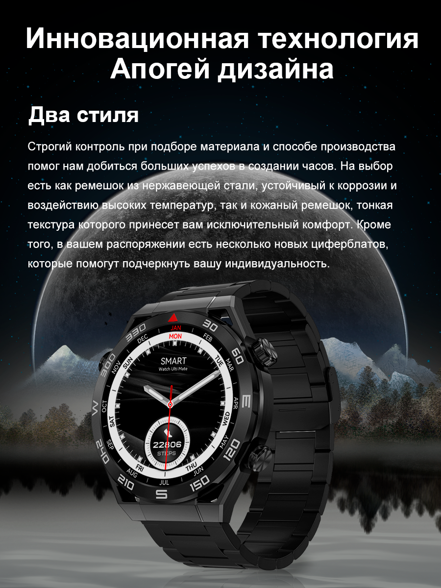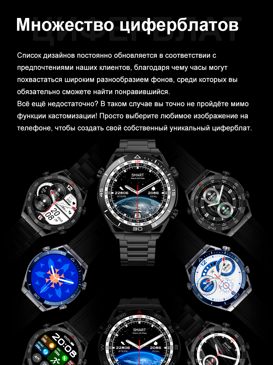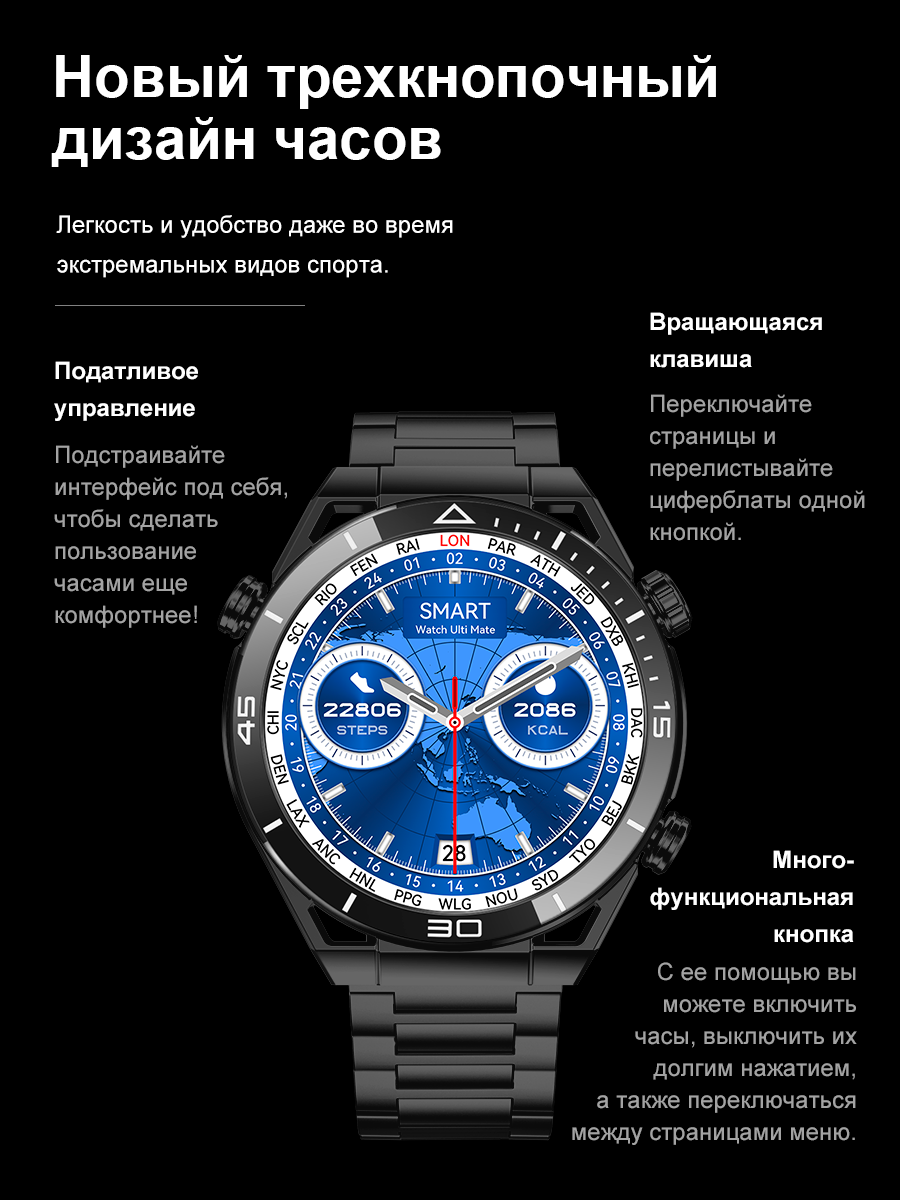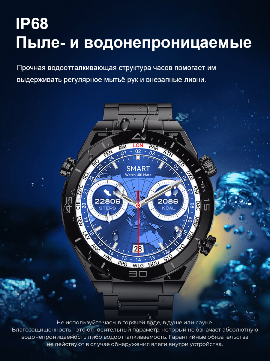 Смарт-часы наручные SMART PRESENT DT Ultra Mate мужские, круглые, с функцией телефона, водонепроницаемые, черные интересное: