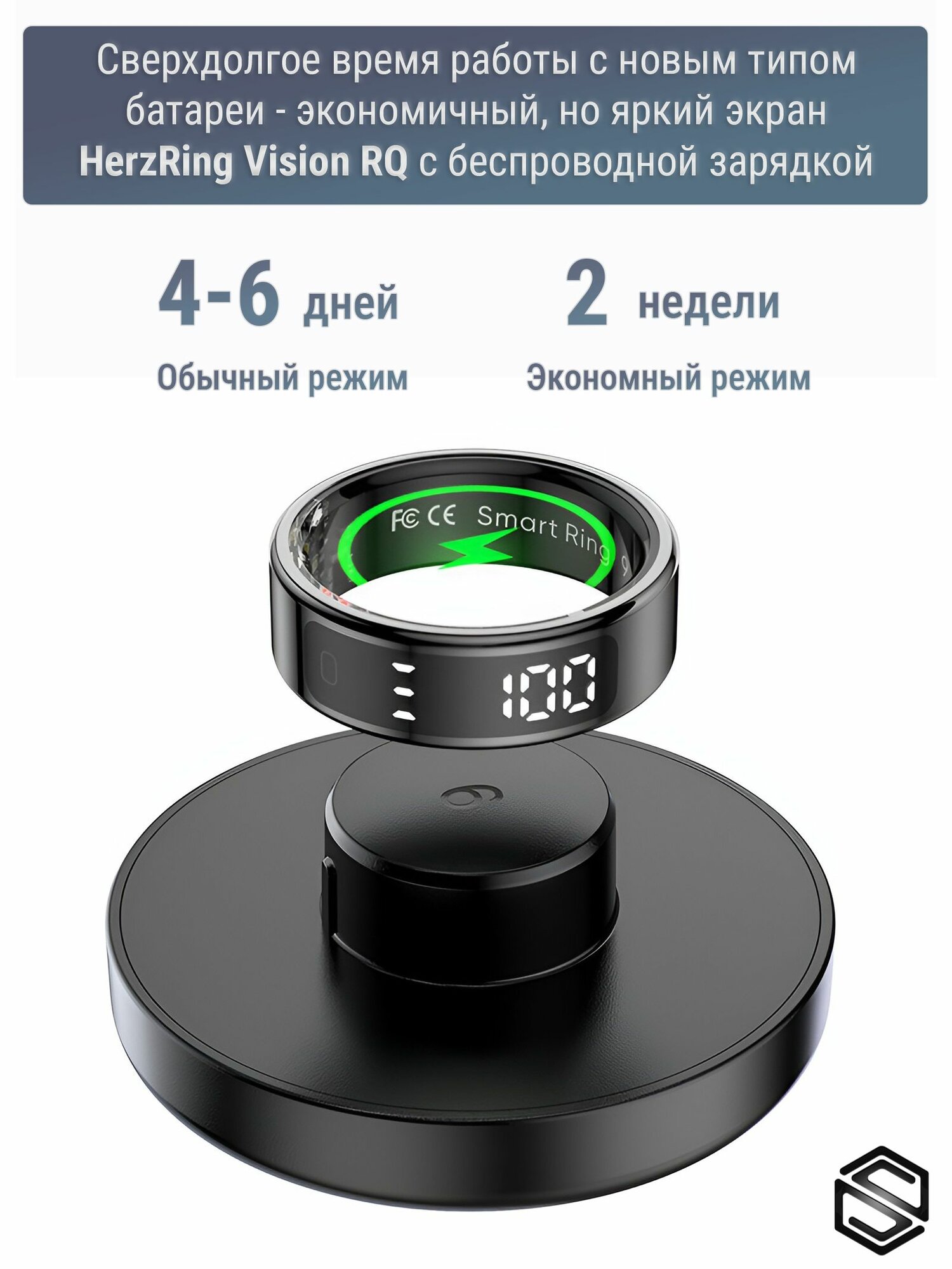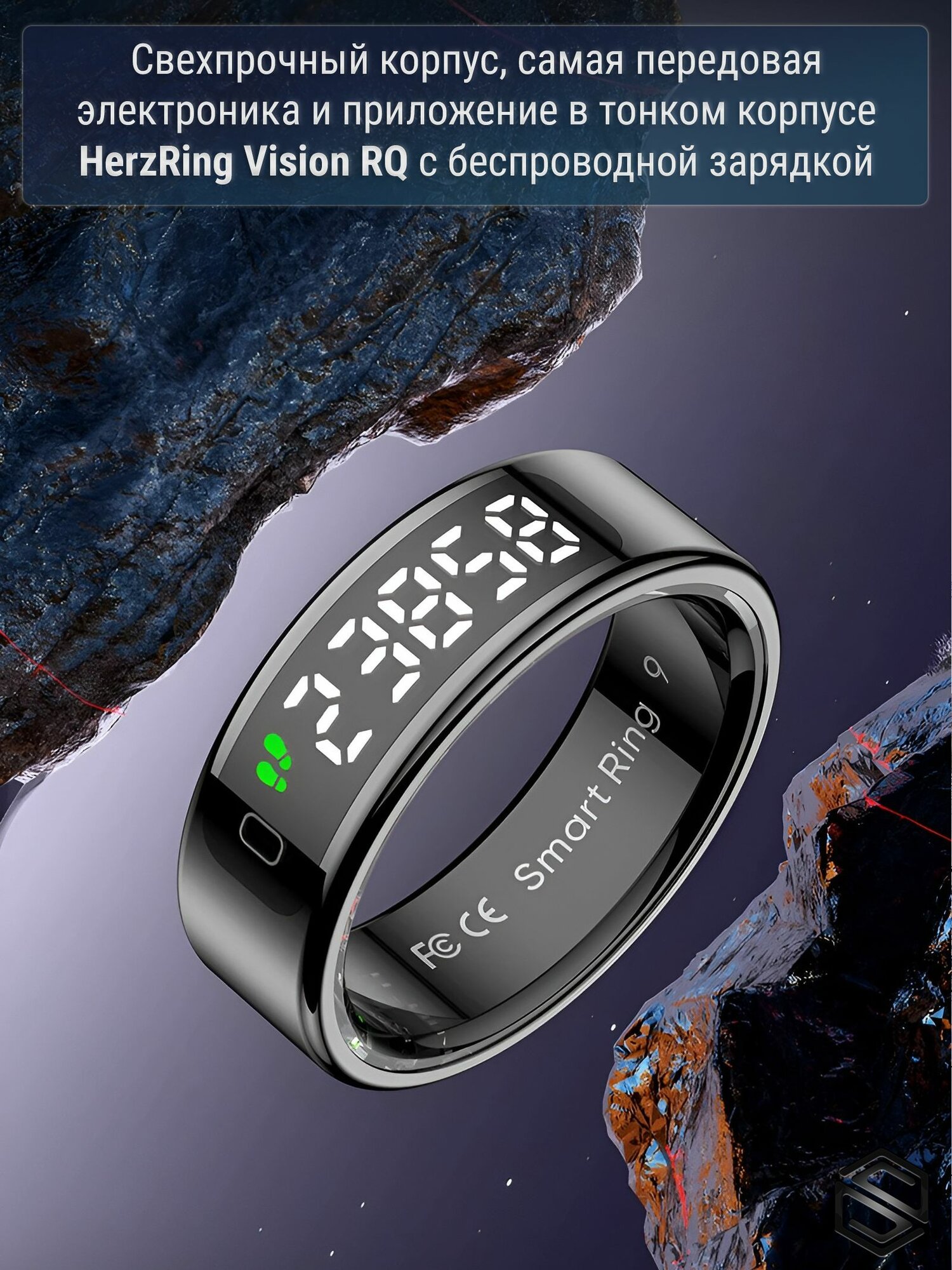 Умное кольцо HerzRing Vision RQ с экраном и жестами, размер 22.4 - обсидиан черный