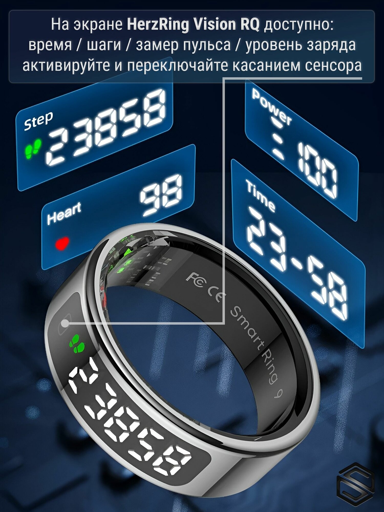 Умное кольцо HerzRing Vision RQ с экраном и жестами, размер 20.8 - титан серебро