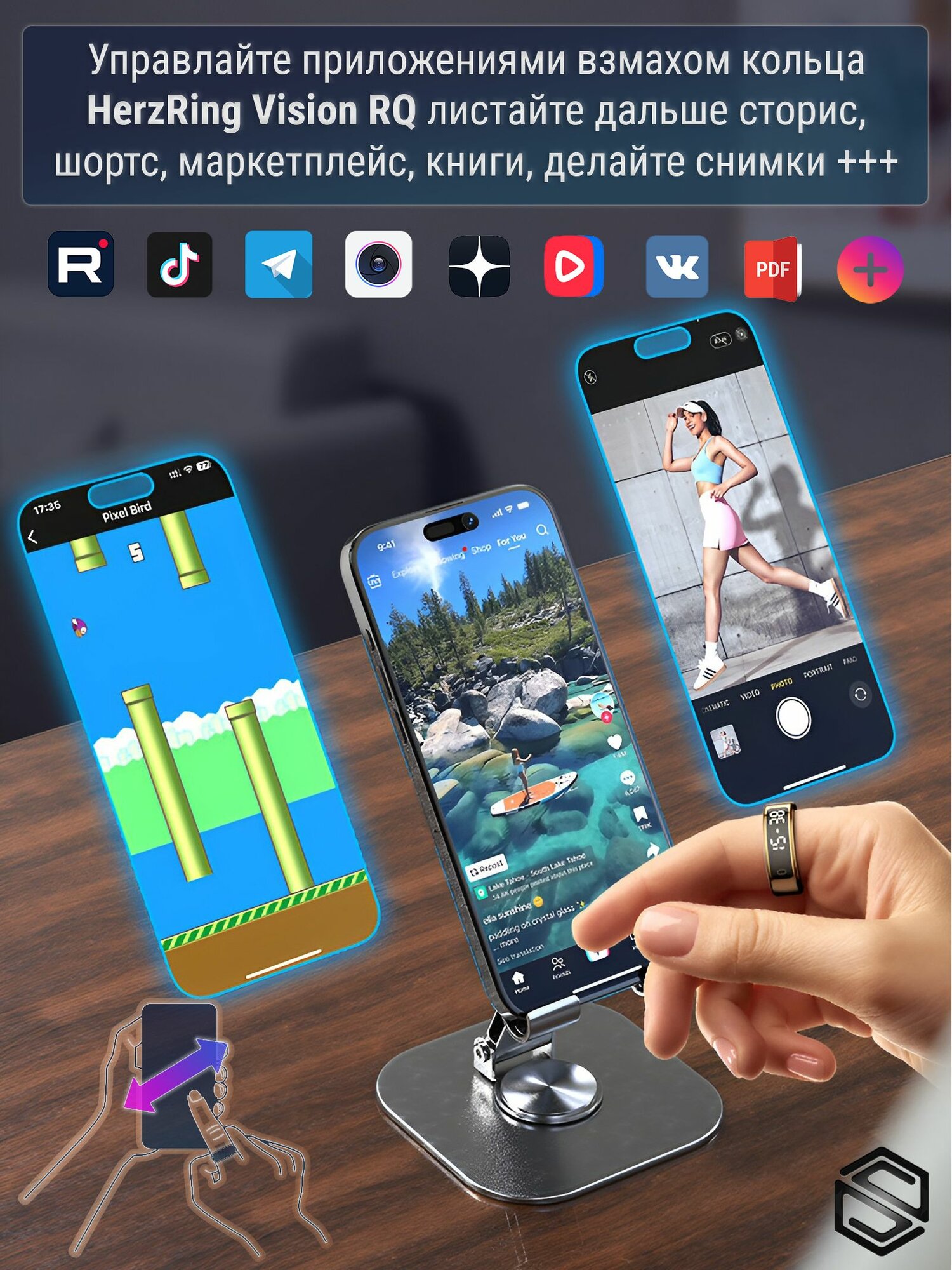 СохранитьУмное кольцо HerzRing Vision RQ с экраном и жестами, размер 19.1 - титан серебро интересное: