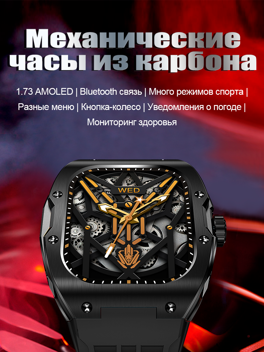 Смарт-часы умные наручные SMART PRESENT DA10 мужские, прямоугольные, с функцией телефона, с большим дисплеем, красные